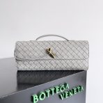 This is a replica BOTTEGA VENETA Andiamo Clutch Bag in Sterling. This intrecciato leather top handle clutch comes with metallic knot closure, including s,Size: Clutch,Dimensions: ,Signature knot closure,Signature intrecciato woven leather detailing