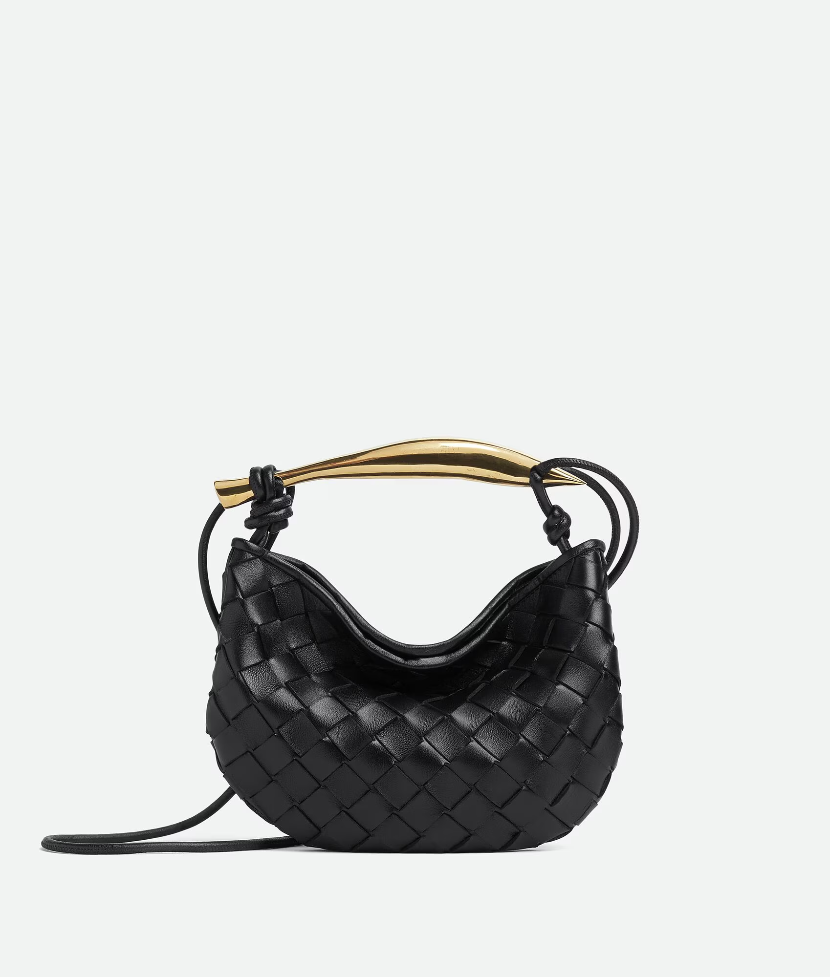 ,Size: Baby,Sculptural metallic top handle, 2″ ,Dimensions: 8″W x 1″D x 4.75″H,Magnetic closure,Signature intrecciato woven leather detailing
