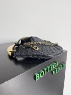 This is a replica BOTTEGA VENETA Sardine Intrecciato Leather Classic Bag in Black. This ‘Sardine’ shoulder bag is braided from strips of supple calf leather and hangs from a sculptural gold-tone top handle.,