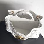 This is a replica BOTTEGA VENETA East-West Andiamo in White. This East-West Intrecciato leather top handle bag with sliding cross-body strap, includingCompartmented interior with one zippered pocket, two open pockets. Bag leather is l,Size: East-west,Dimensions: ,Handle drop: 3.1” in,Strap drop: 21.8” in,Magnetic closure,Signature intrecciato woven leather detailing