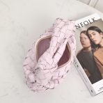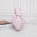 This is a replica BOTTEGA VENETA Mini Jodie in Bliss washed. This Top handle bag comes with rounded shape and signature knot in supple Intrecciato leather.,Size: Mini,Dimensions: ,Handle drop: 3.9” in,Single compartment,Zipper closure,Signature intrecciato woven leather detailing