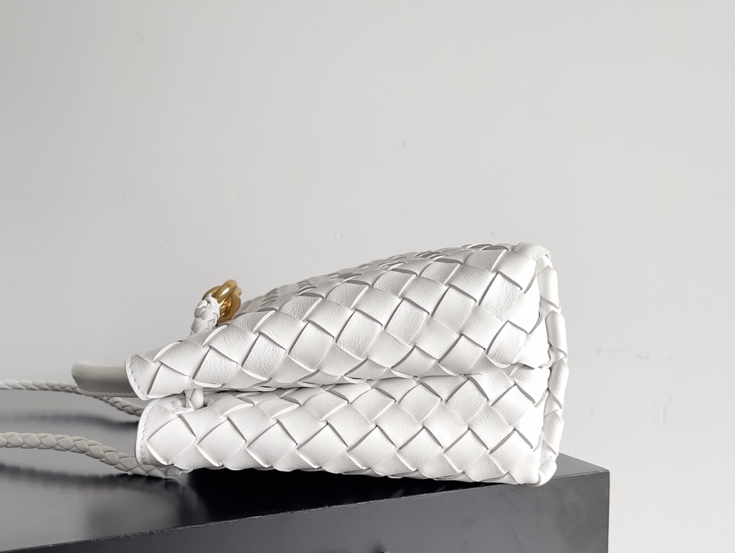 This is a replica BOTTEGA VENETA Small Andiamo in White. This intrecciato leather top handle bag comes with sliding cross-body strap. ,Lining: Lambskin bonded Intrecciato,