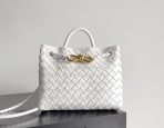 This is a replica BOTTEGA VENETA Small Andiamo in White. This intrecciato leather top handle bag comes with sliding cross-body strap. ,Lining: Lambskin bonded Intrecciato,