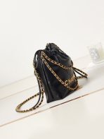 This is a replica CHANEL 22 Mini Handbag Shiny Calfskin & Gold-Tone Metal in Black. From the Cruise 2025 Collection by Virginie Viard, this mini 22 bag comes in shiny calfskin,,Size,