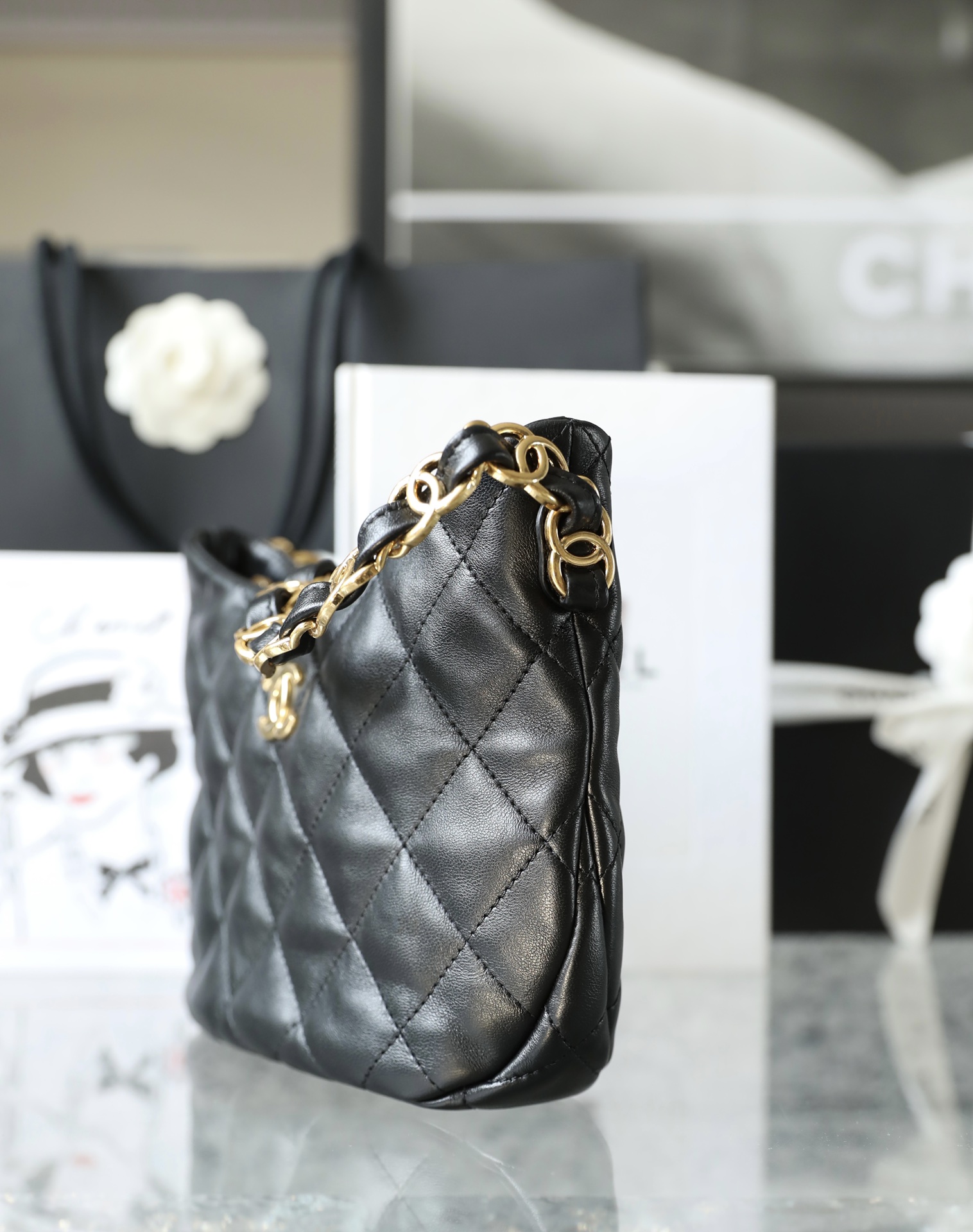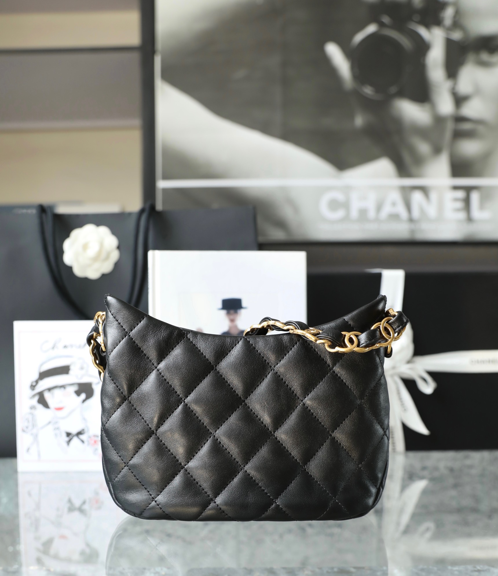 CHANEL Hobo Handbag Caviar & Gold-Tone Metal