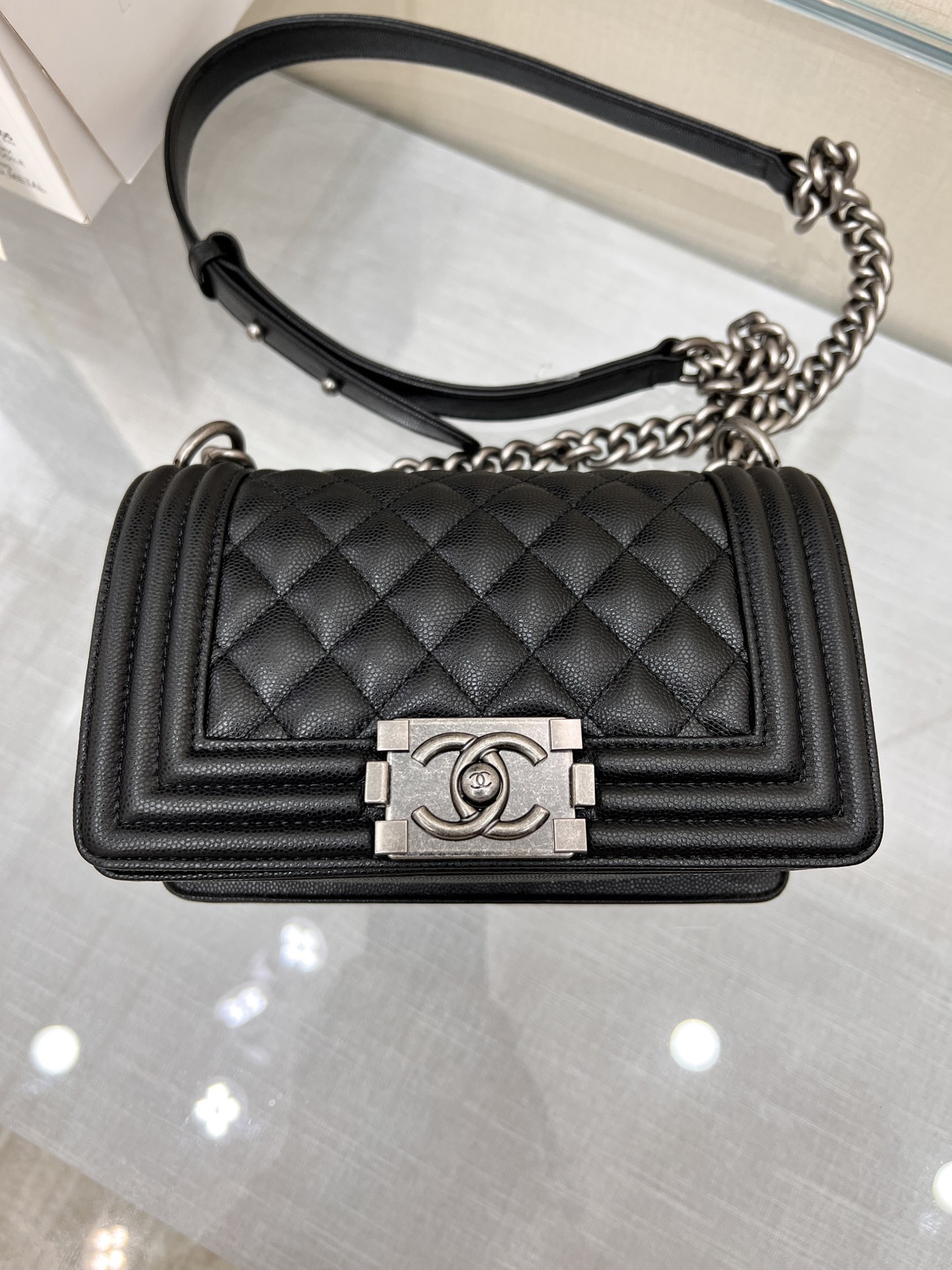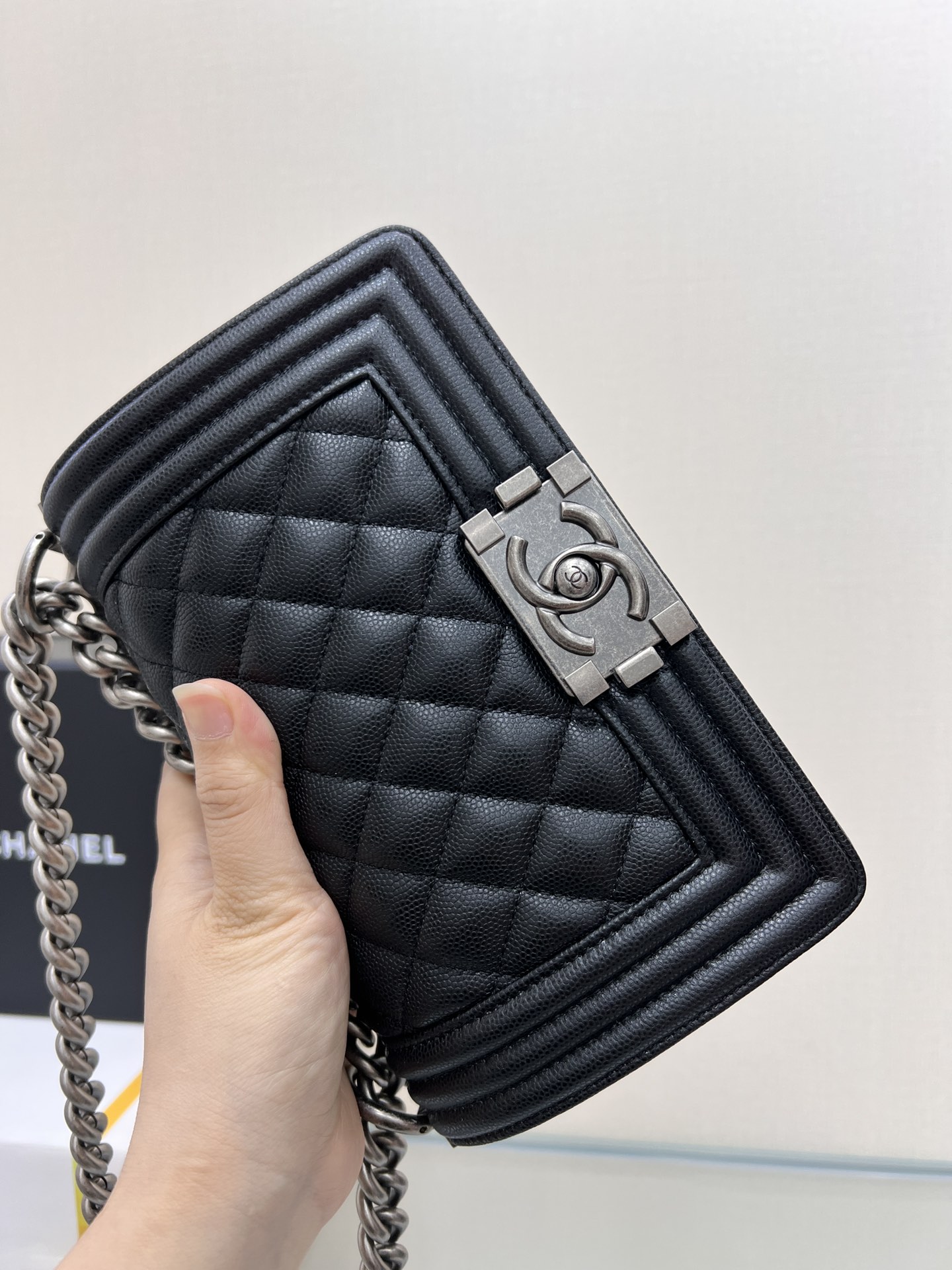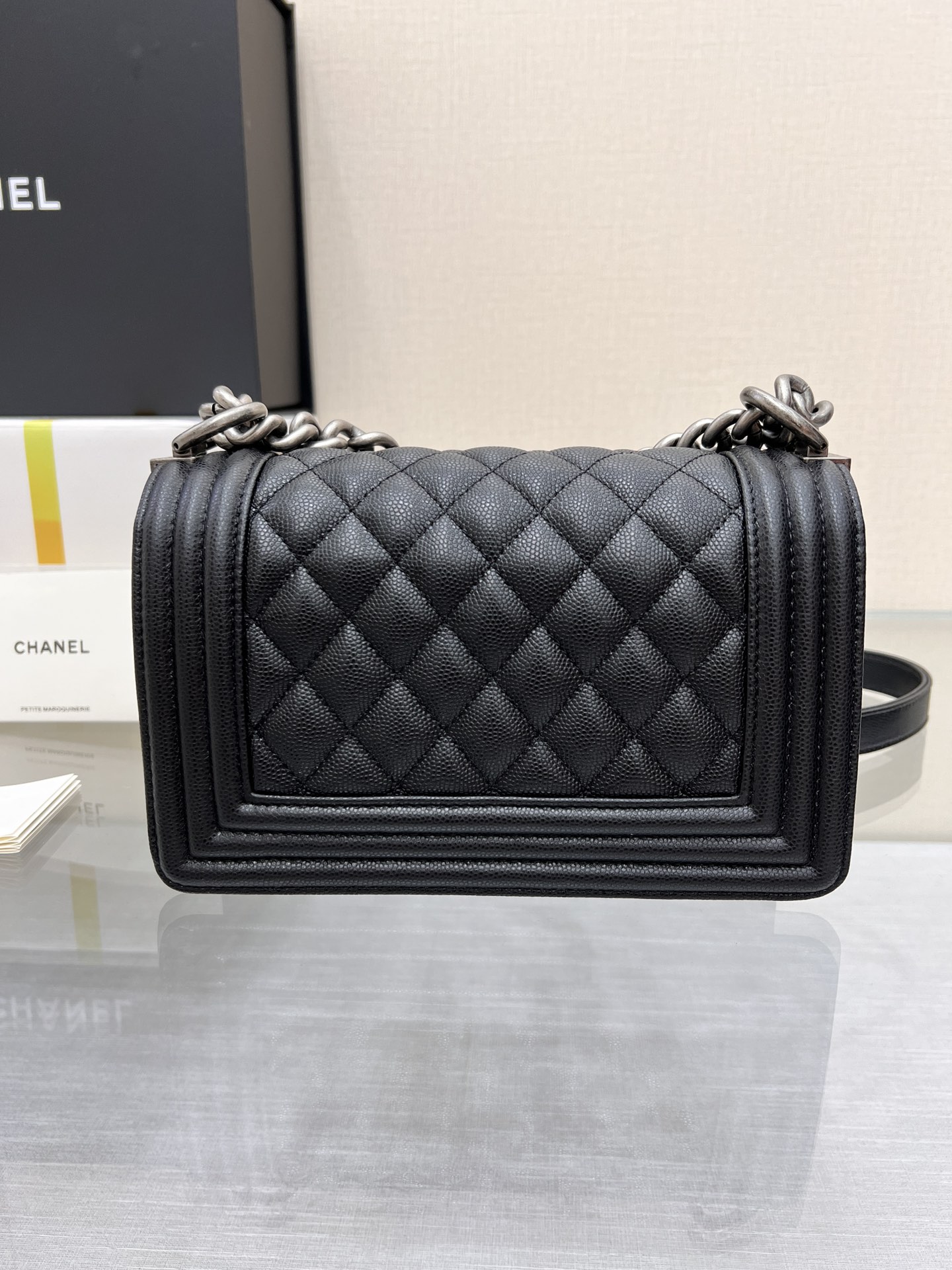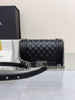 This is a replica CHANEL Small Boy Flap Calfskin & Ruthenium-Finish Metal in Black. This small boy flap bag comes in caviar black caviar calfskin featuring ruthenium-finish hardware. Grosgrain Lining & Single Interior Pocket. ,Size: Small,