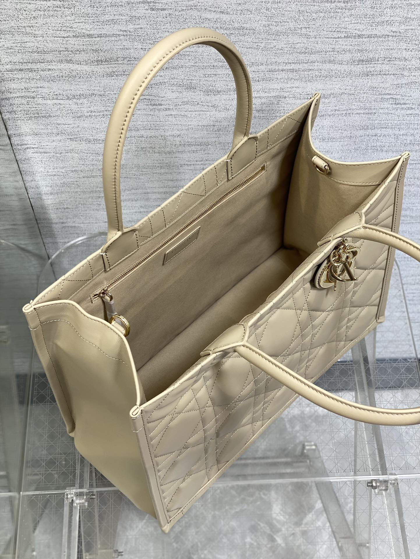 This is a replica CHRISTIAN DIOR Medium Dior Book Tote in Warm Taupe Macrocannage Calfskin. Main composition of t, calfskin. ,
