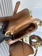This is a replica CHRISTIAN DIOR Saddle Bag with Strap in golden. Main composition: grained calfskin. ,Size,