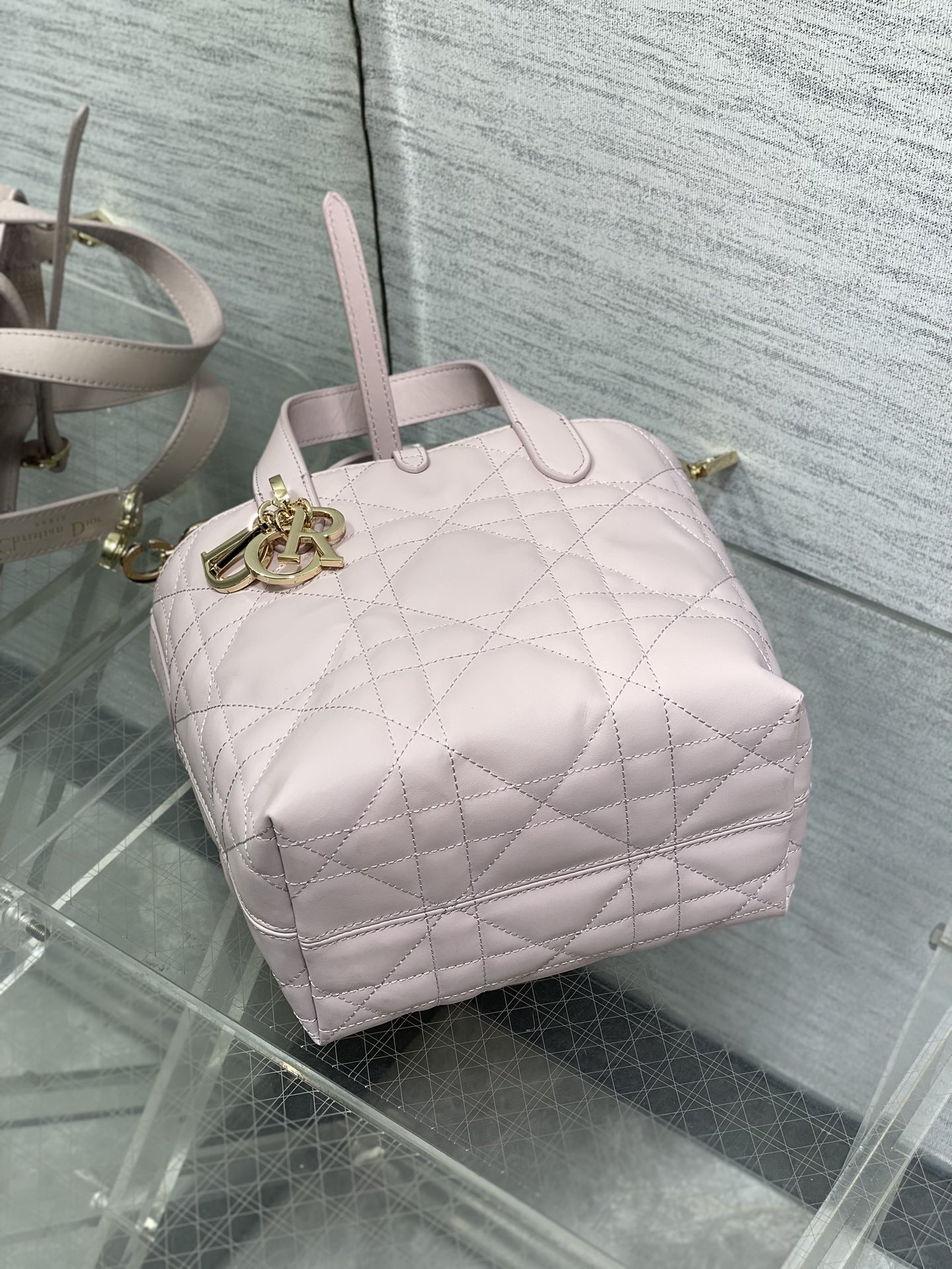 This is a replica CHRISTIAN DIOR Small Small Dior Toujours Vertical Tote Bag in pale pink. ,