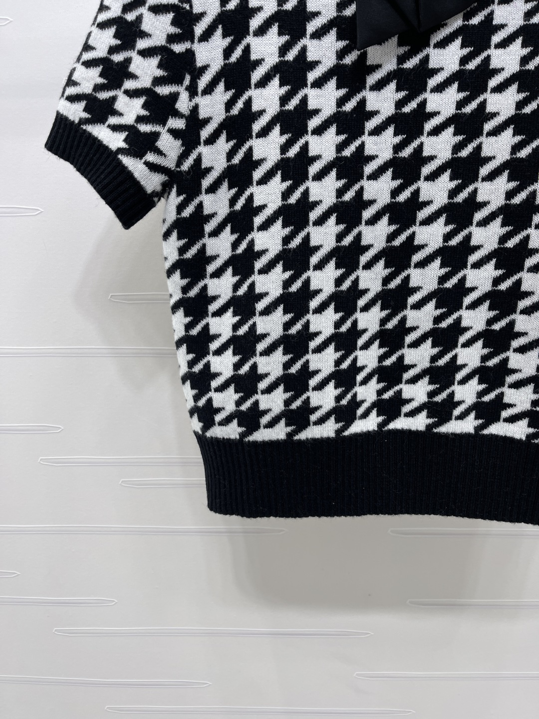 Be the first to review “Dio*r houndstooth bow knit short sleeve top A706B400C”