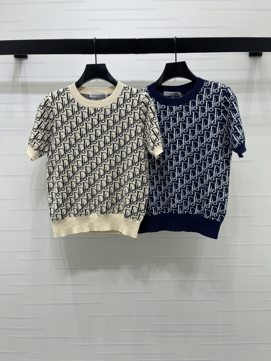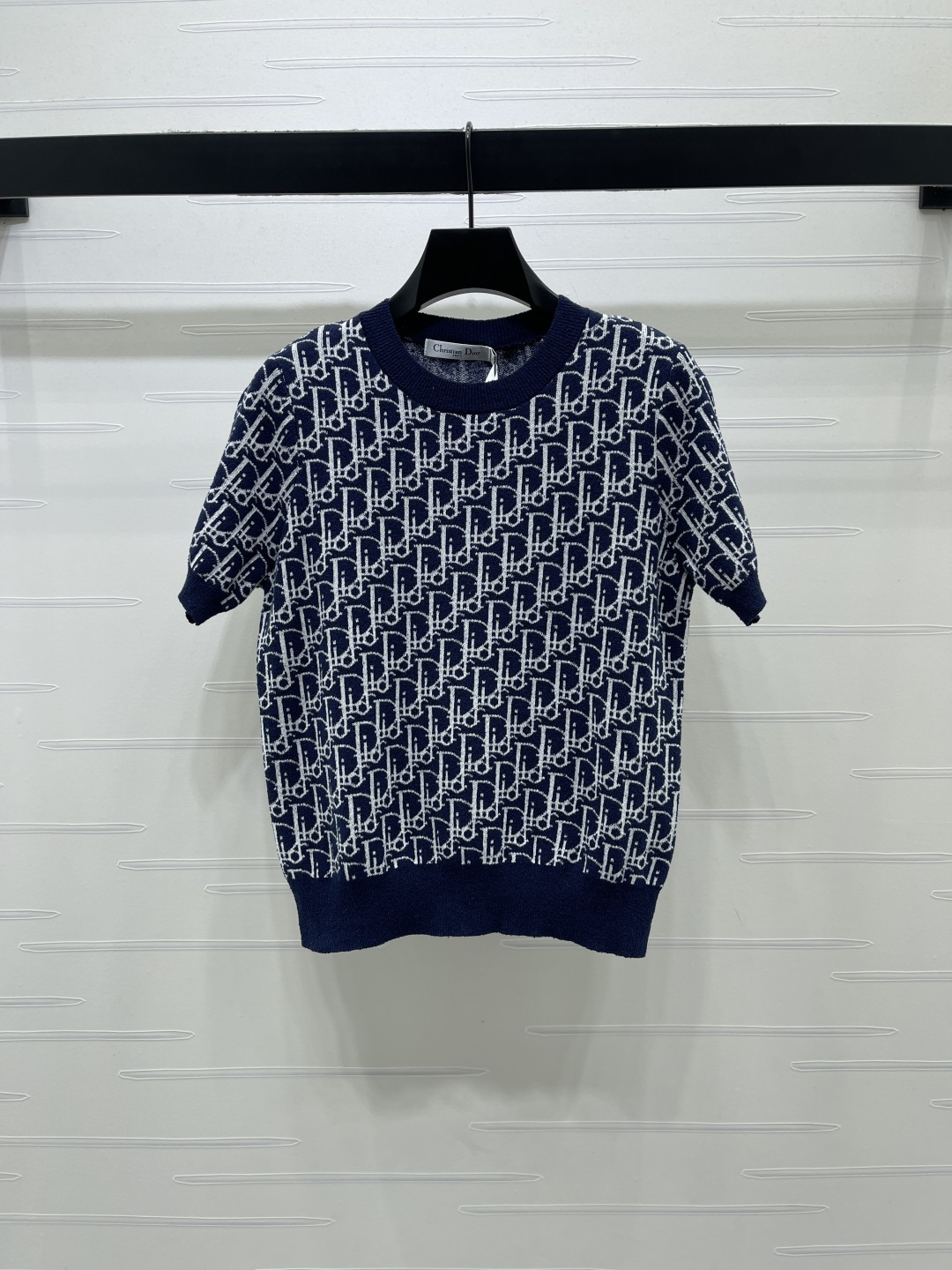 Dio*r oblique monogram jacquard short sleeve knit top A706B270C