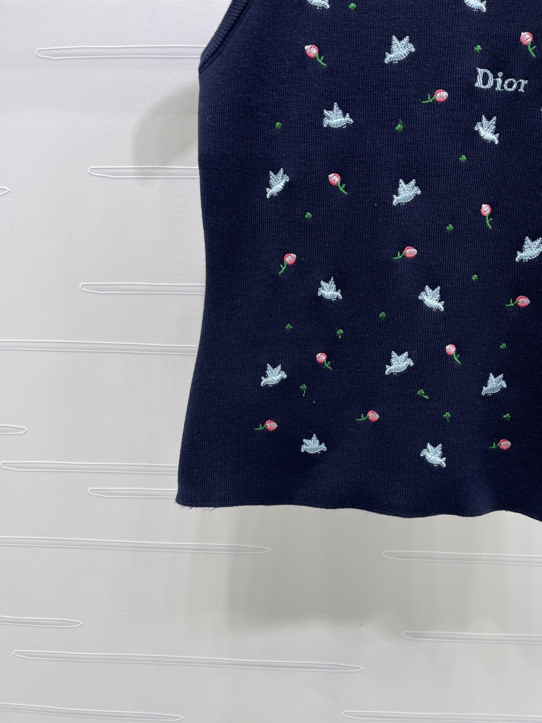 Be the first to review “Dio*r rose and swallow embroidered ribbed tank top navy A706B280C”