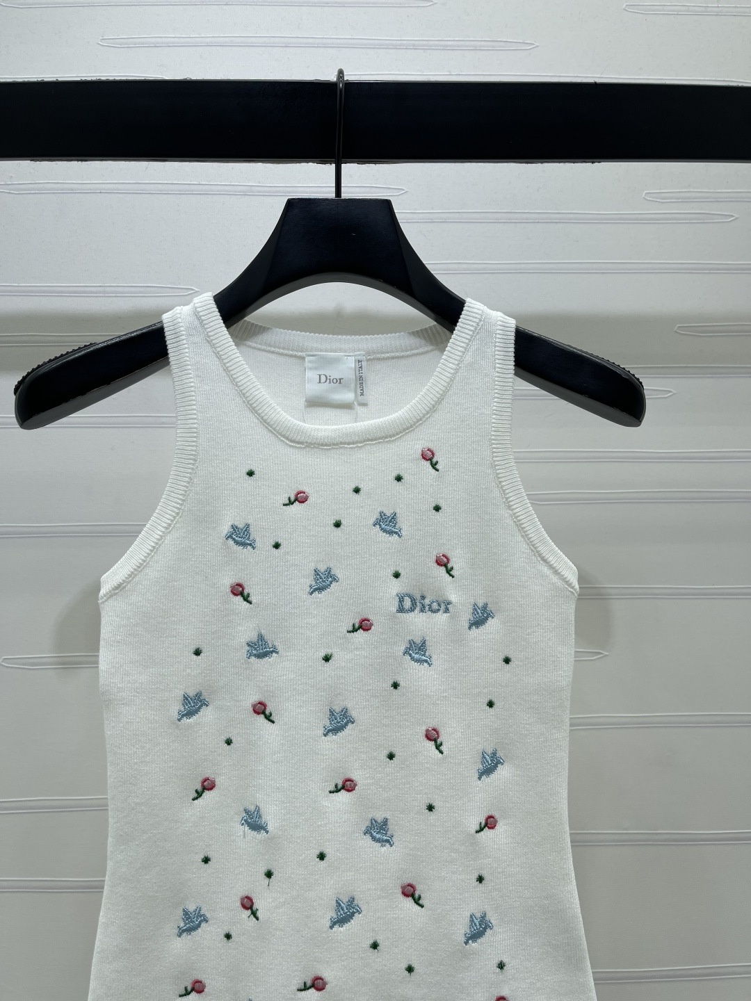 Be the first to review “Dio*r rose and swallow embroidered ribbed tank top white A706B280C”