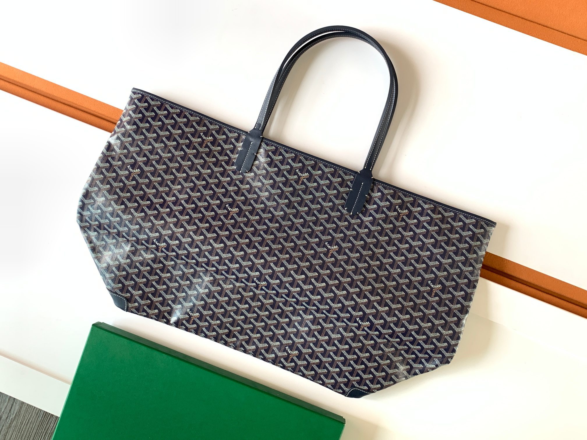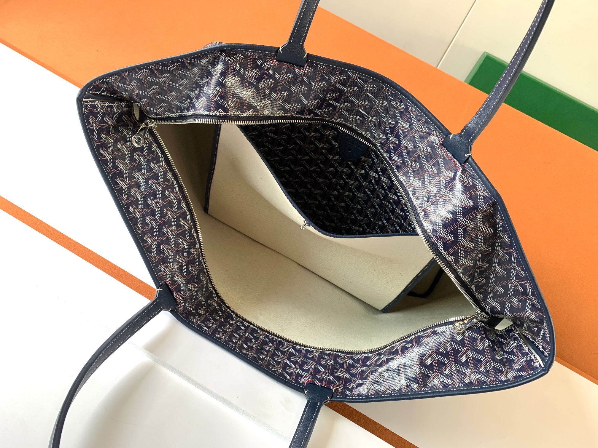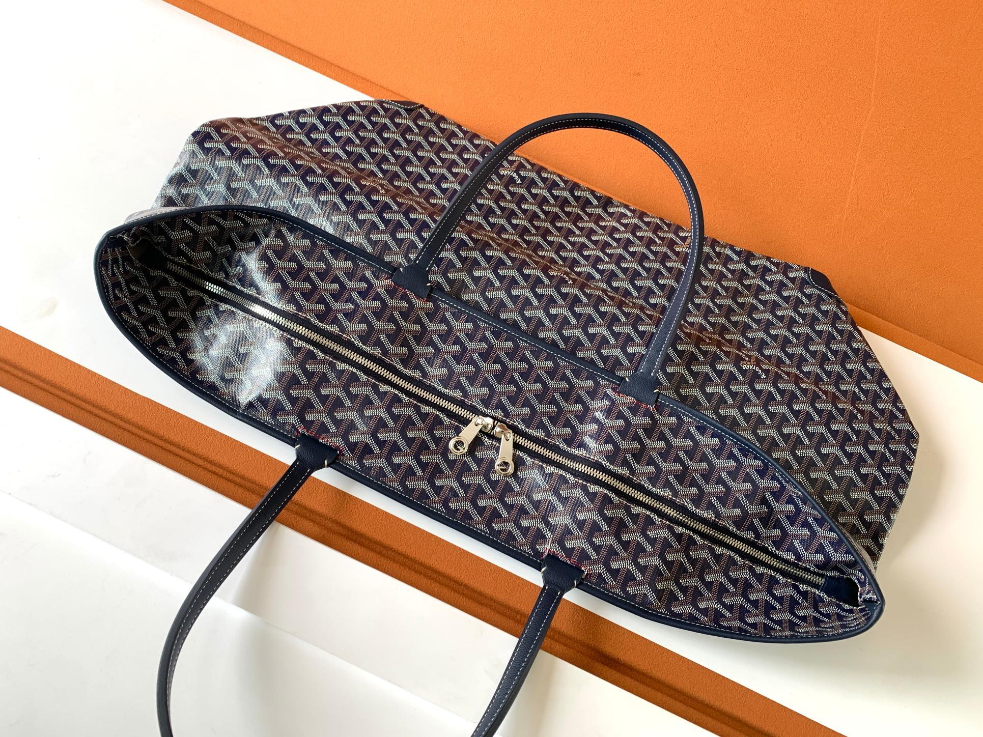 This is a replica GOYARD Artois GM Bag in navy blue. The Artois GM bag uses the aesthetic lines and codes of our Artois PM and MM bags in a travel format, ideal for a weekend or as carry-on luggage. The handles ensure comfort when worn over the shoulder. The zip closure has two lockable zips to secure the contents.,