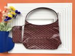 This is a replica GOYARD Bohème Hobo Bag in burgendy. The Bohème Hobo bag epitomizes lightness, flexibility, and safety thanks to its zip closure. It is very comfortable as a shoulder bag thanks to its wide handle. It also features the emblematic removable pouch that closes with a snap fastener.,