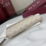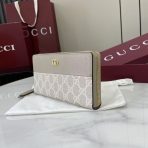 ,Beige and white GG Supreme and beige leather,Gold-toned hardware,Brown taffeta lining,Double G,12 card slots and three bill compartments,Zip coin pocket,Zip around closure,Weight: 0.50lbs approximately,7.5″W x 4.1″H x .8″D