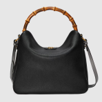 This is a replica GUCCI Diana large shoulder bag in black leather. Black leather trim. ,