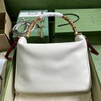 This is a replica GUCCI Diana large shoulder bag in white leather. Black leather trim. ,