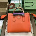 This is a replica GUCCI Diana small tote bag in Orange leather. Double G. ,