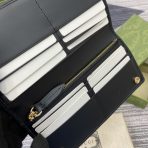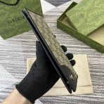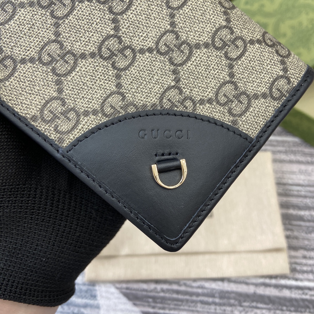 ,Beige and black new GG Monogram coated fabric,Brown leather trim,Web taffeta lining,Embossed Gucci,Additional D-ring for detachable items,Inside: 1 zip pocket, card slots with flat pocket underneath,Snap button closure,Closed: 7.5″W x 3.7″H x 1.2″D ; Open: 7.5″W x 8″H x 0.4″D,,Weight: 0.19lbs approximately