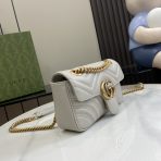 This is a replica GUCCI GG Marmont mini shoulder bag in light grey leather. Light gold toned hardware. ,Size: Mini,