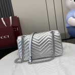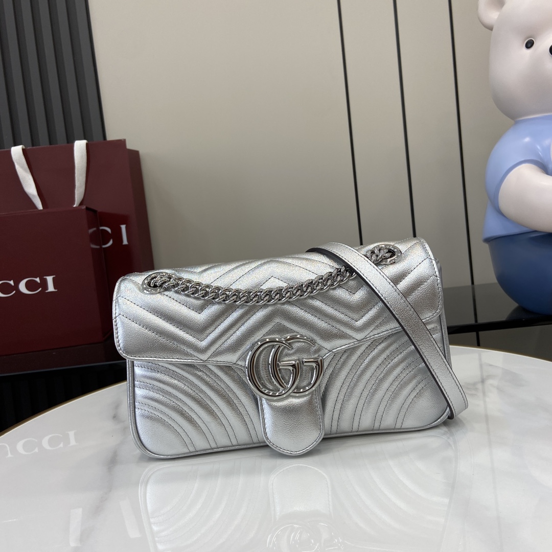This is a replica GUCCI GG Marmont small shoulder bag in metalic silver leather. Silver-toned hardware. ,Size: Small,