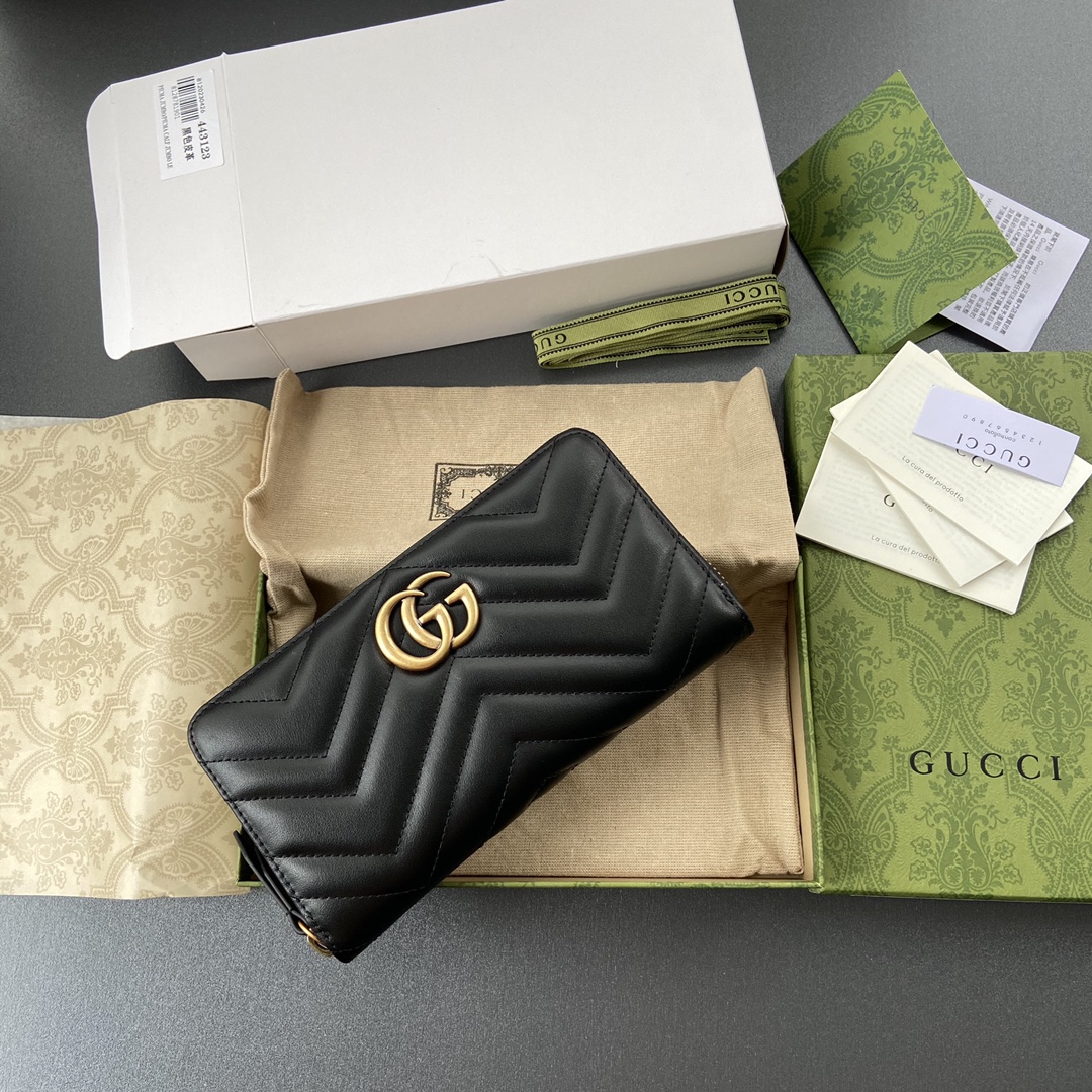 This is a replica GUCCI GG Marmont zip around wallet 443123. ,