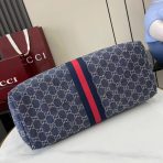 This is a replica Gucci Giglio large tote bag.,Blue and white GG denim,Blue and red Web canvas trim,Light gold-toned hardware,Brown cotton lining,Double G,Detachable pouch,Outside: D-rings,7.1″ handle drop,Hidden magnetic closure,16.5″ (23.6″)W x 18.5″H x 6.3″D,Weight: 1.3lbs approximately,Made in Italy,Fits an iPad, iPhone, Airpods and small items