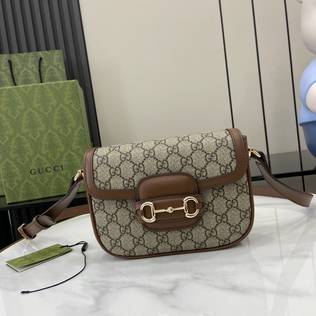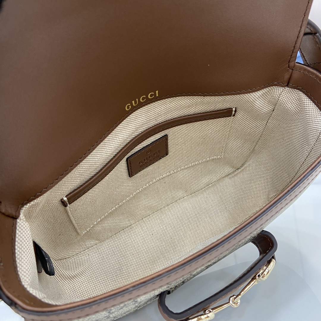 This is a replica GUCCI Horsebit 1955 Soft Mini Shoulder Bag in beige and dark brown. It continues its equestrian-inspired design with b,