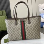 This is a replica GUCCI Ophidia medium tote bag in Beige and ebony GG Supreme. Green and red Web. ,Size: Medium,
