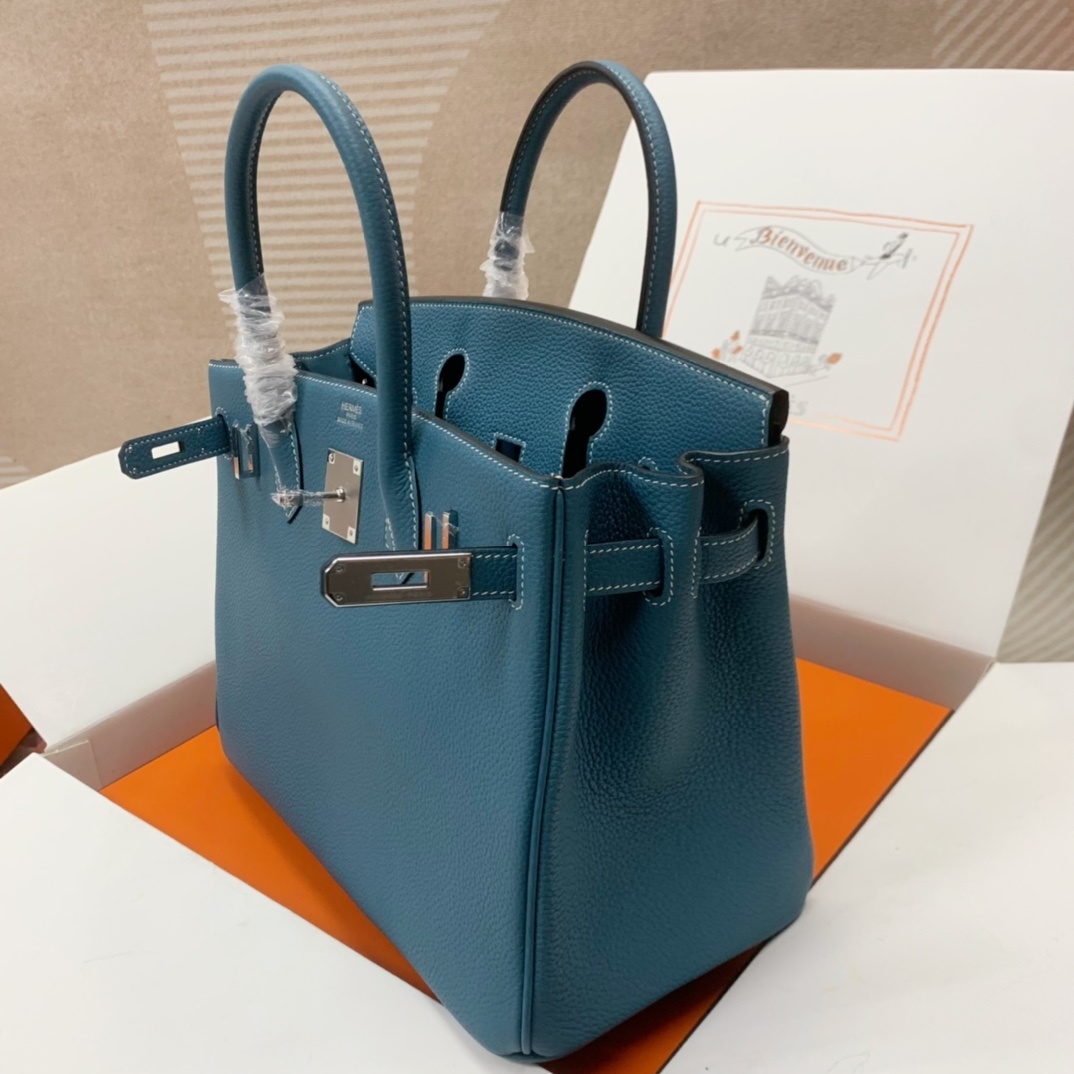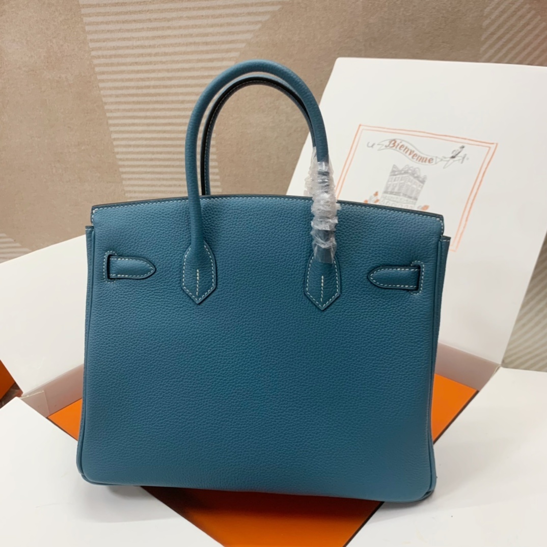 This is a replica ###Hermès Birkin 30 Blue Jean Togo Palladium Hardware. ###