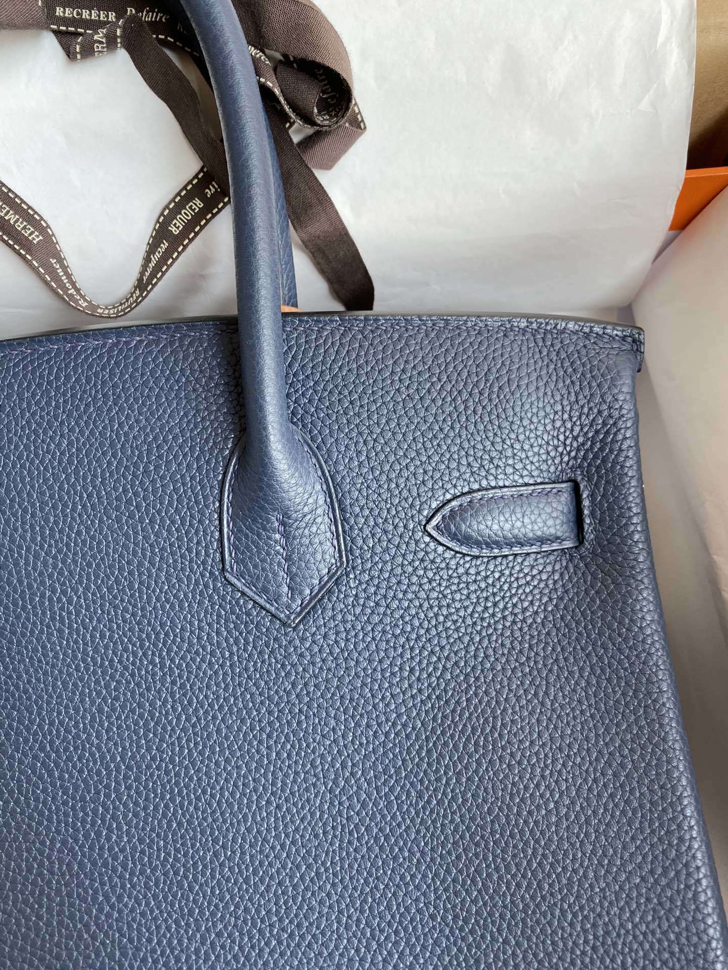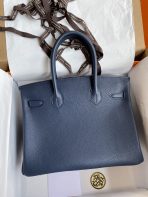 This is a replica ###Hermès Birkin 30 Deep Blue Togo Palladium Hardware. ###