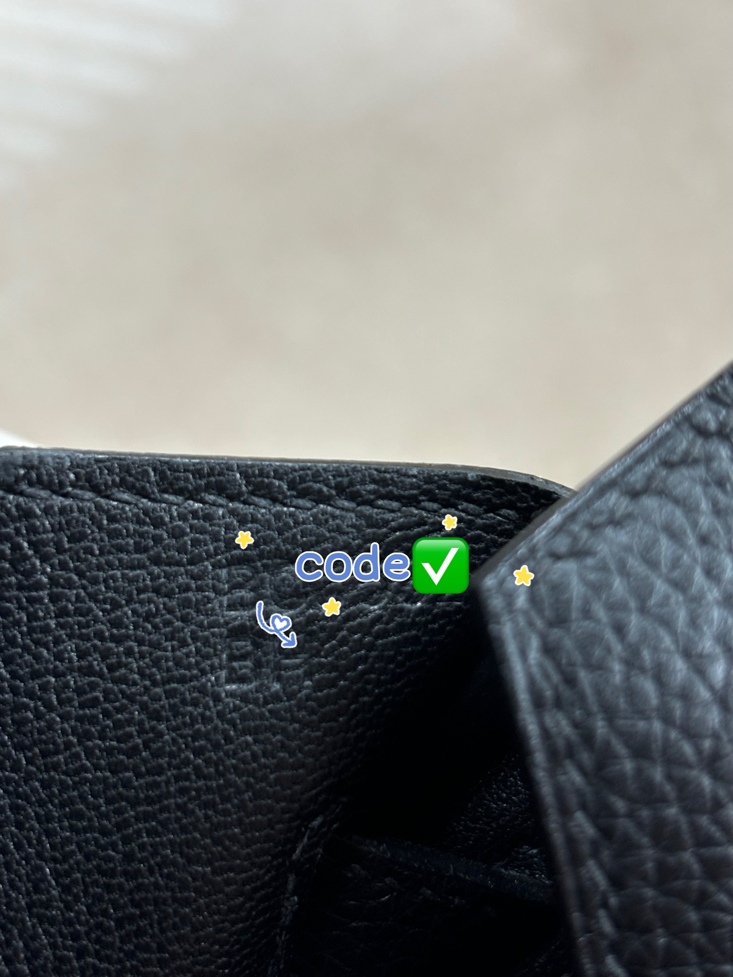 ###The interior is lined with Black chevre and has one zip pocket with an Hermès engraved zipper pull and an open pocket on the opposite side.###