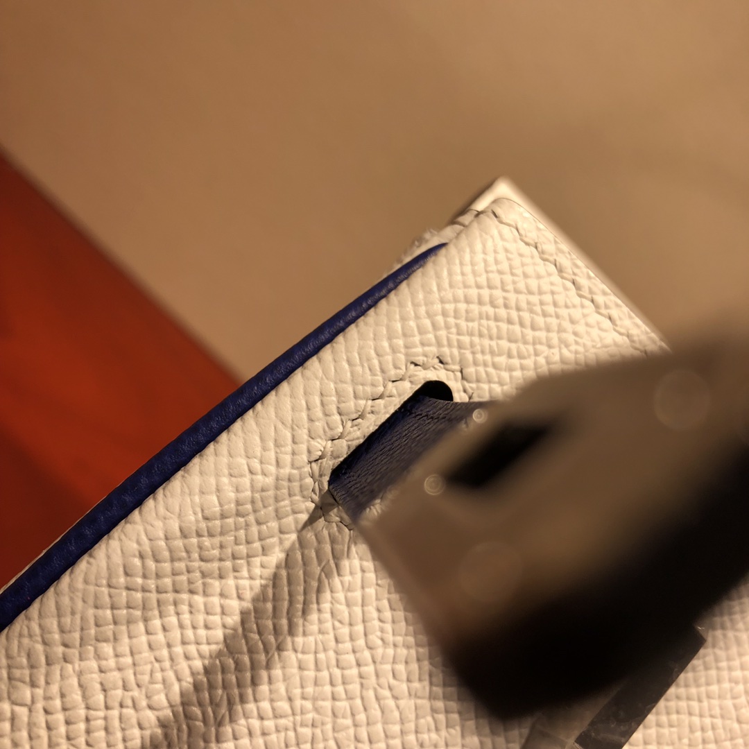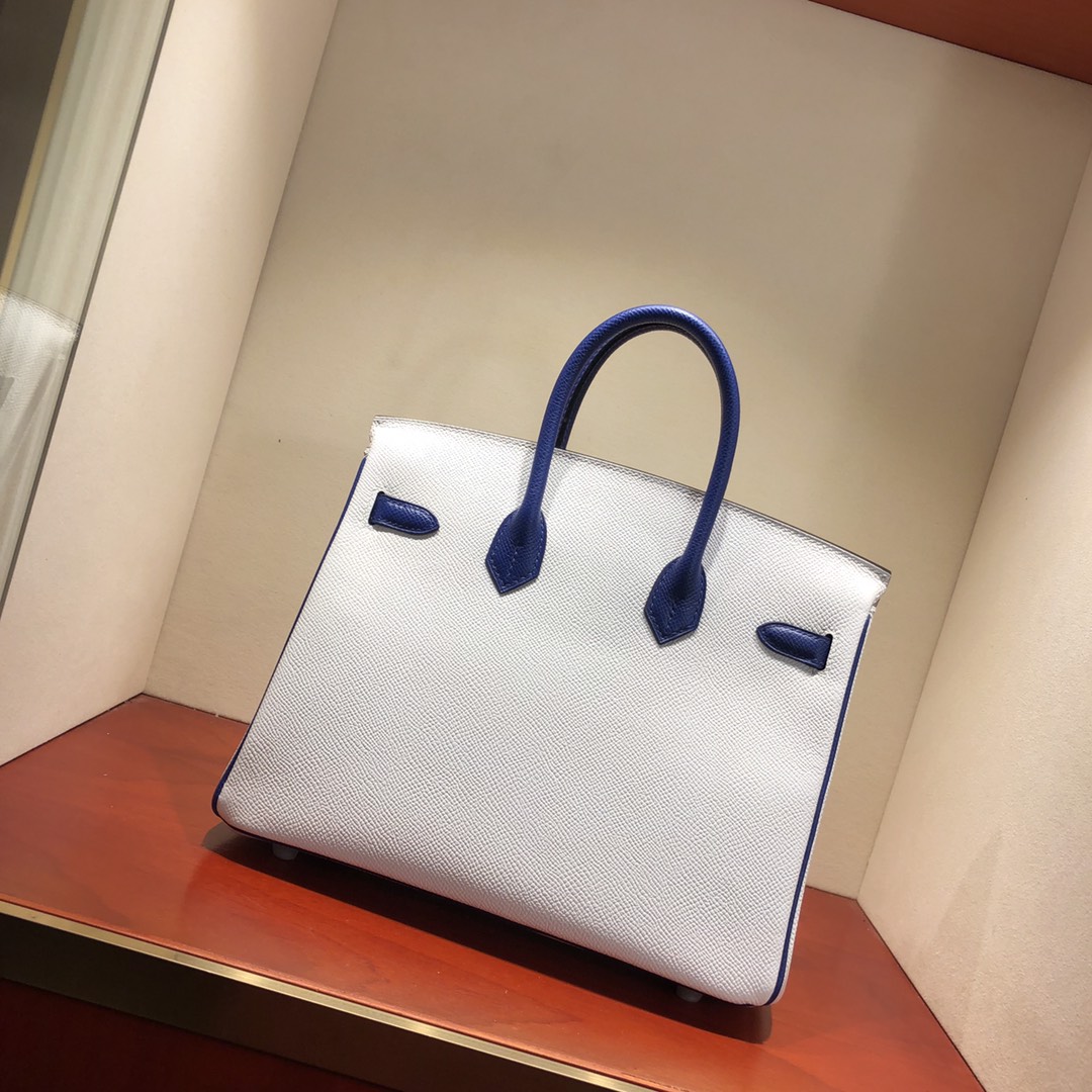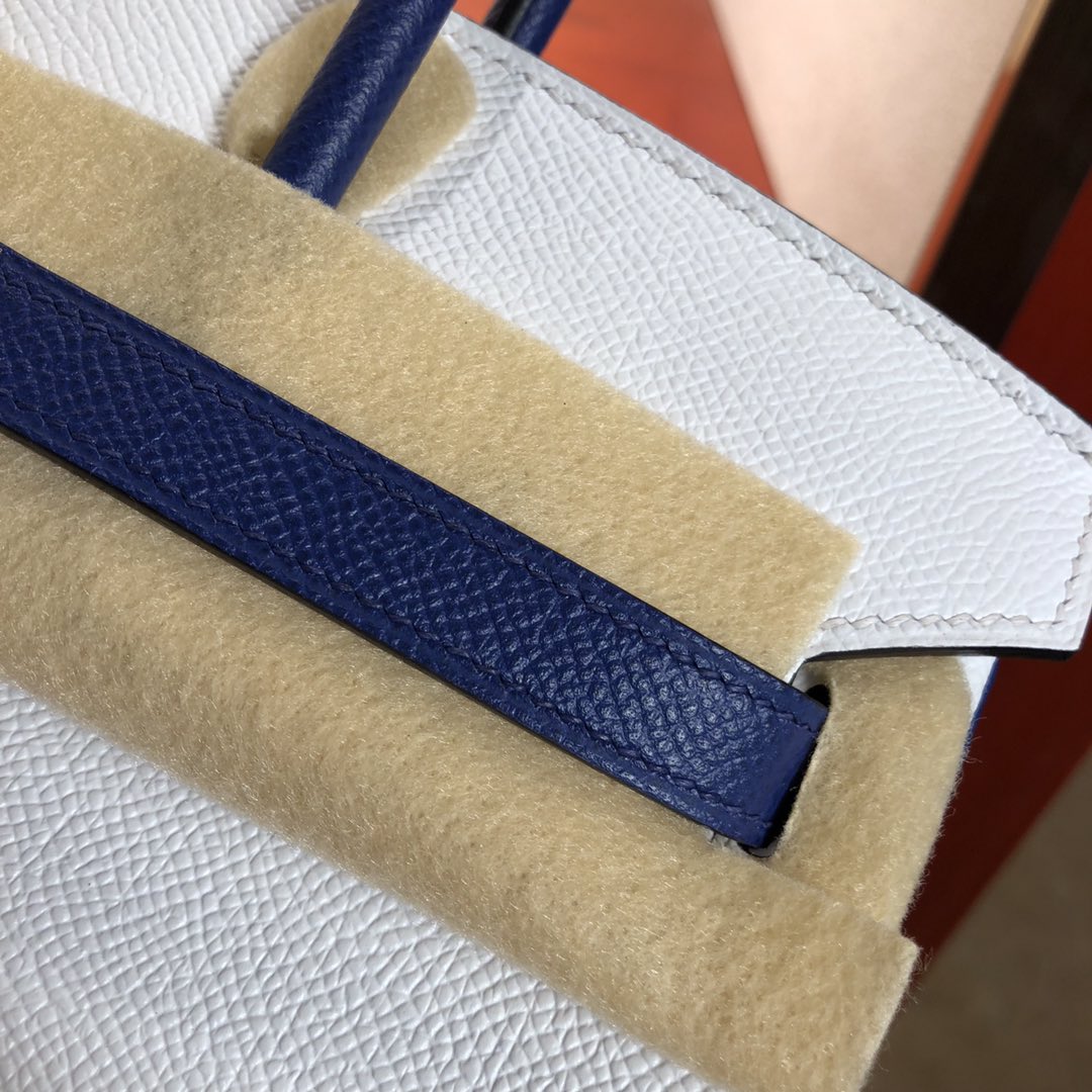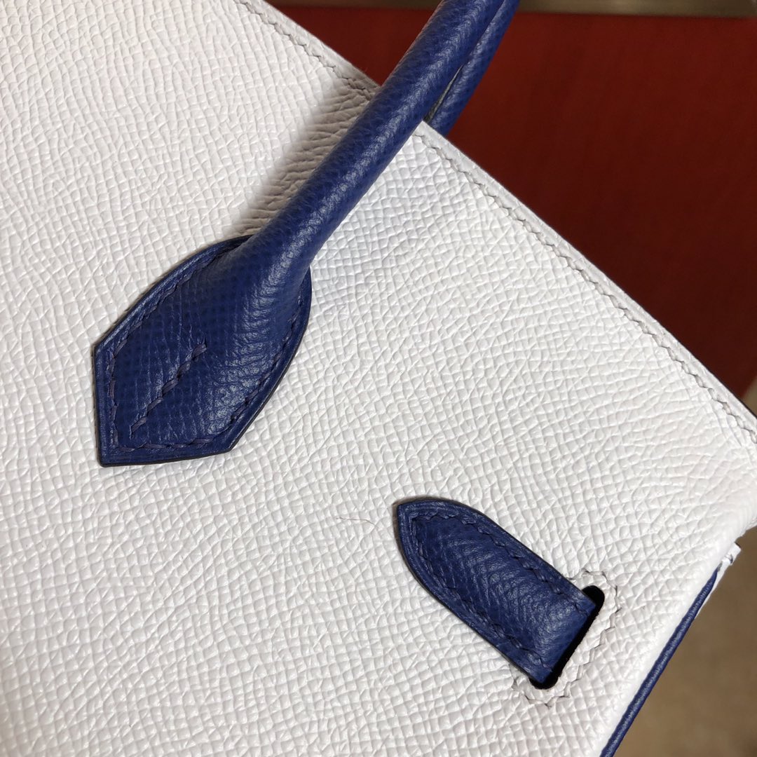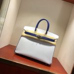 This is a replica ###Hermès Birkin 35 Blanc and Blue Htdra Epsom Leather and Gold Hardware. ###