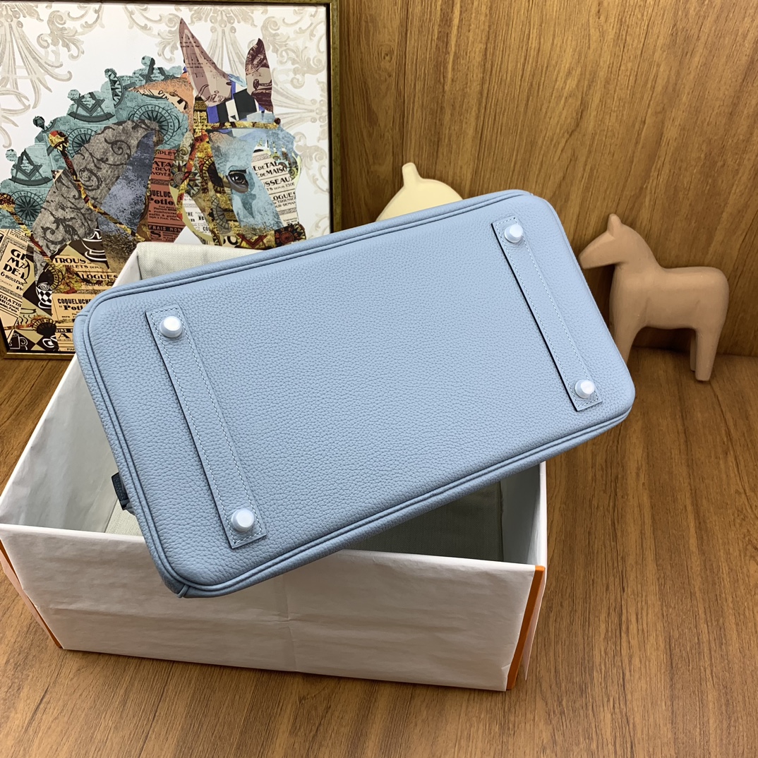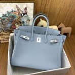 This is a replica ###Hermès Birkin 35 Bleu Lin Togo and Palladium Hardware. ###