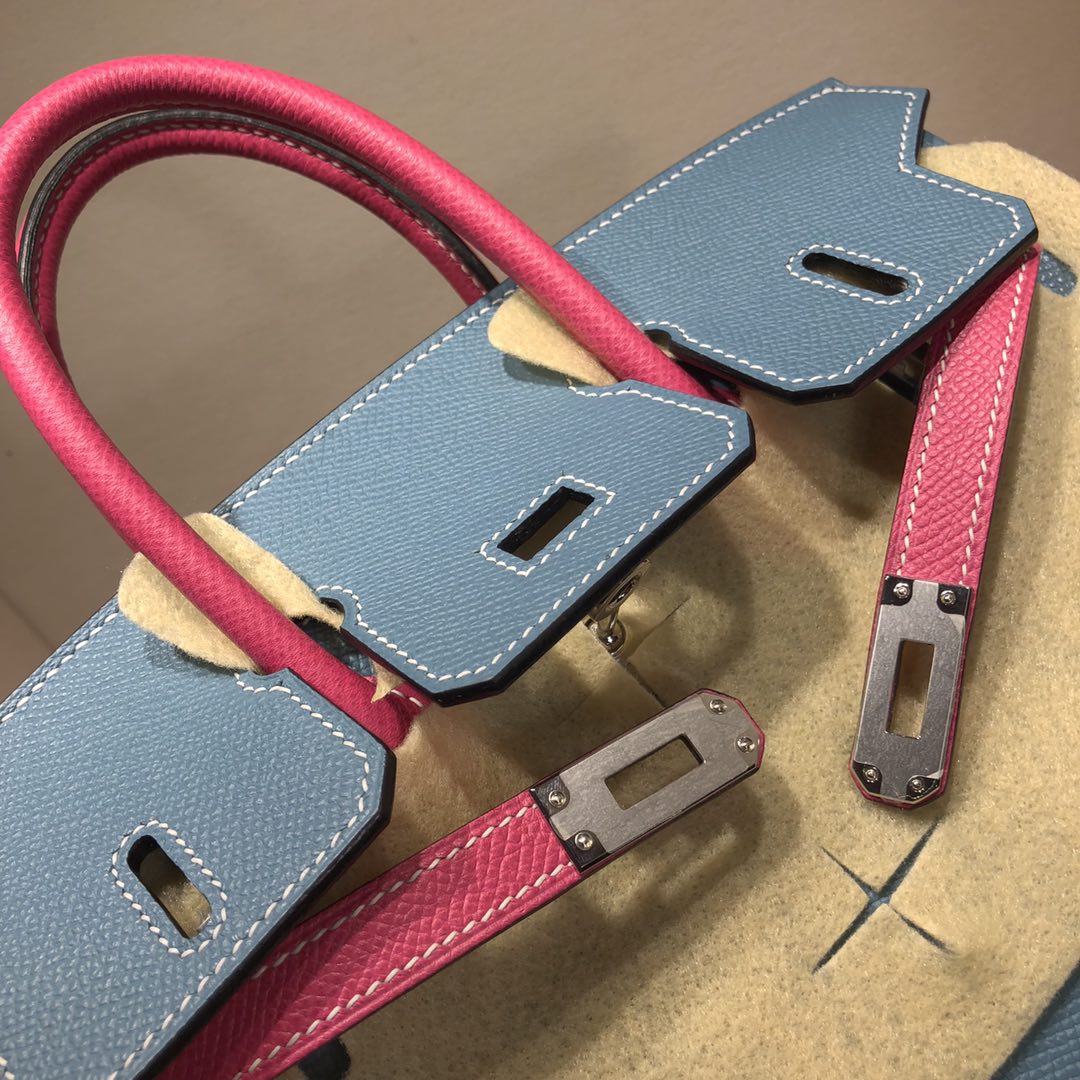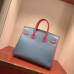 This is a replica ###Hermès Birkin 35 Blue Jean and Rose Tyrien Epsom Leather and Palladium Hardware. ###