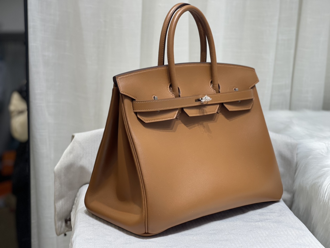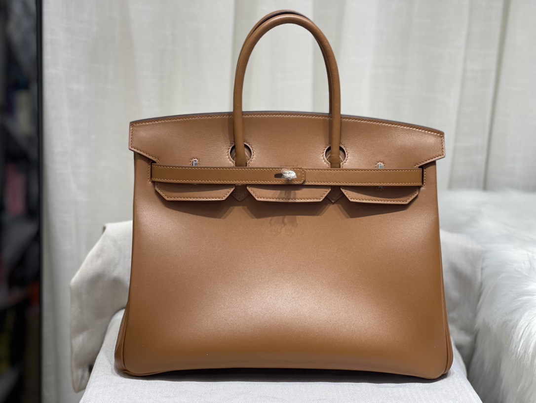 This is a replica Hermès Birkin 35 Gold Box Palladium Hardware###. ###
