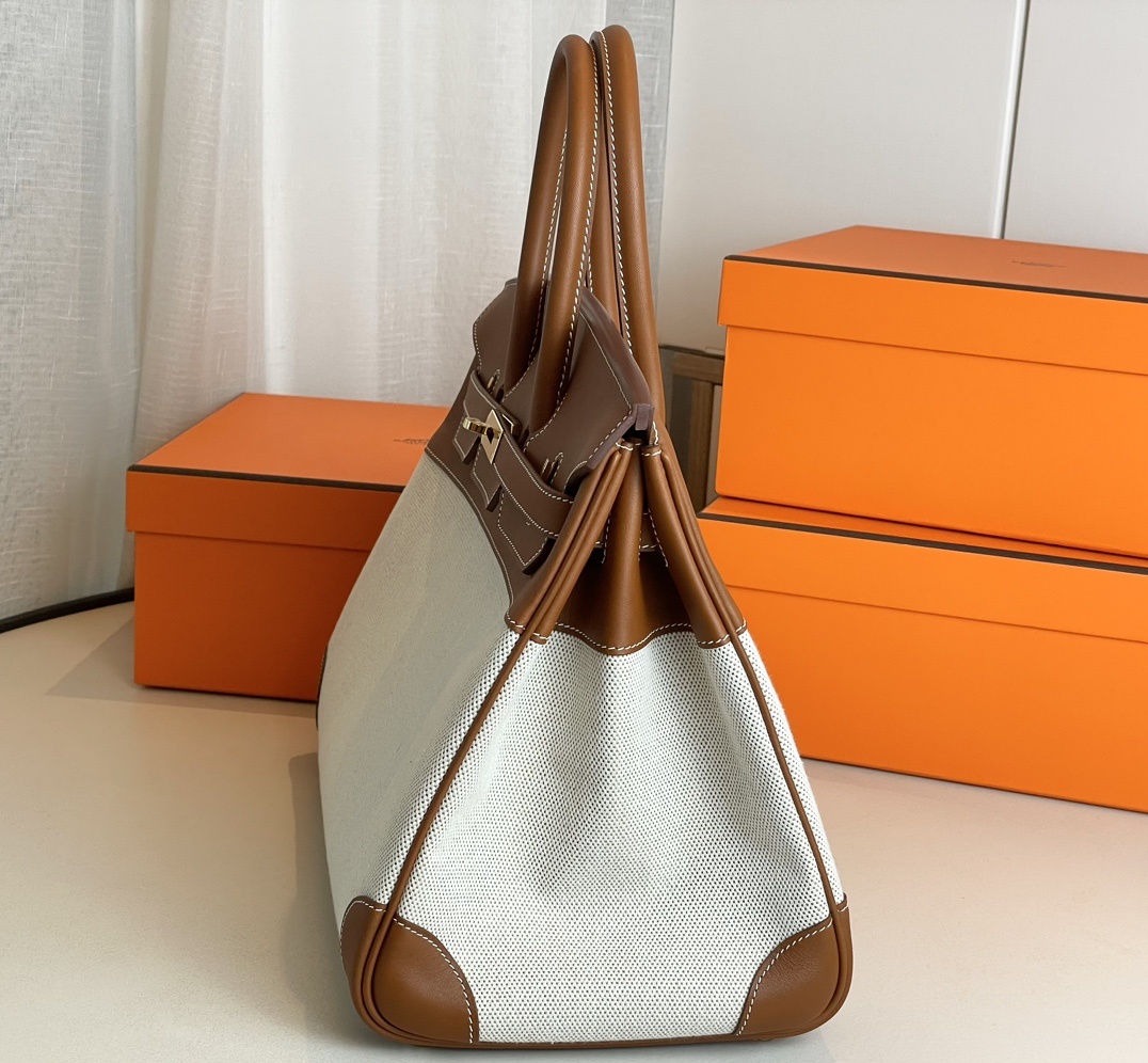 This is a replica Hermès Birkin 35 Gold Togo and Craie Gold Hardware###. ###