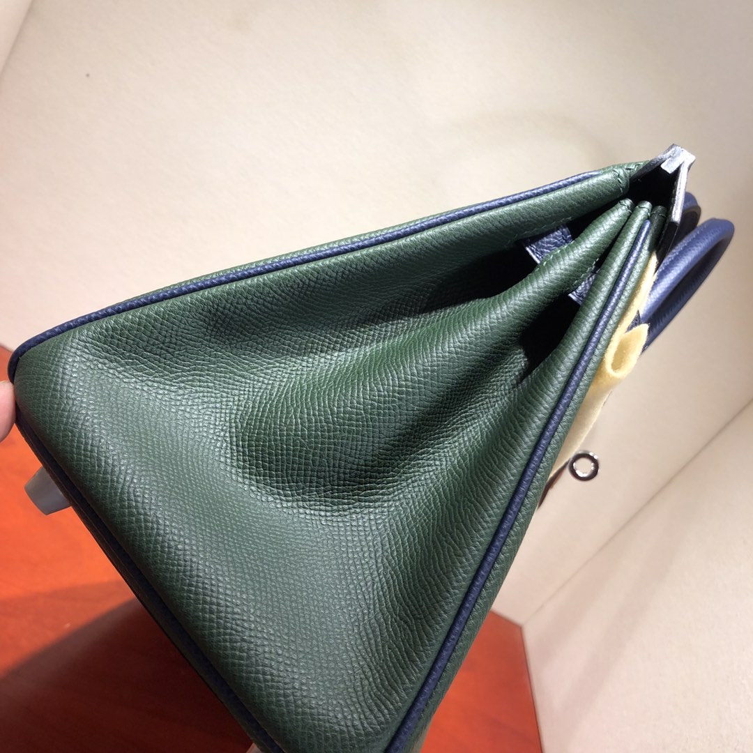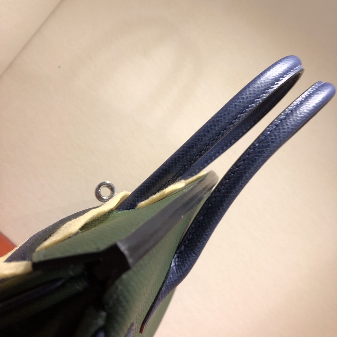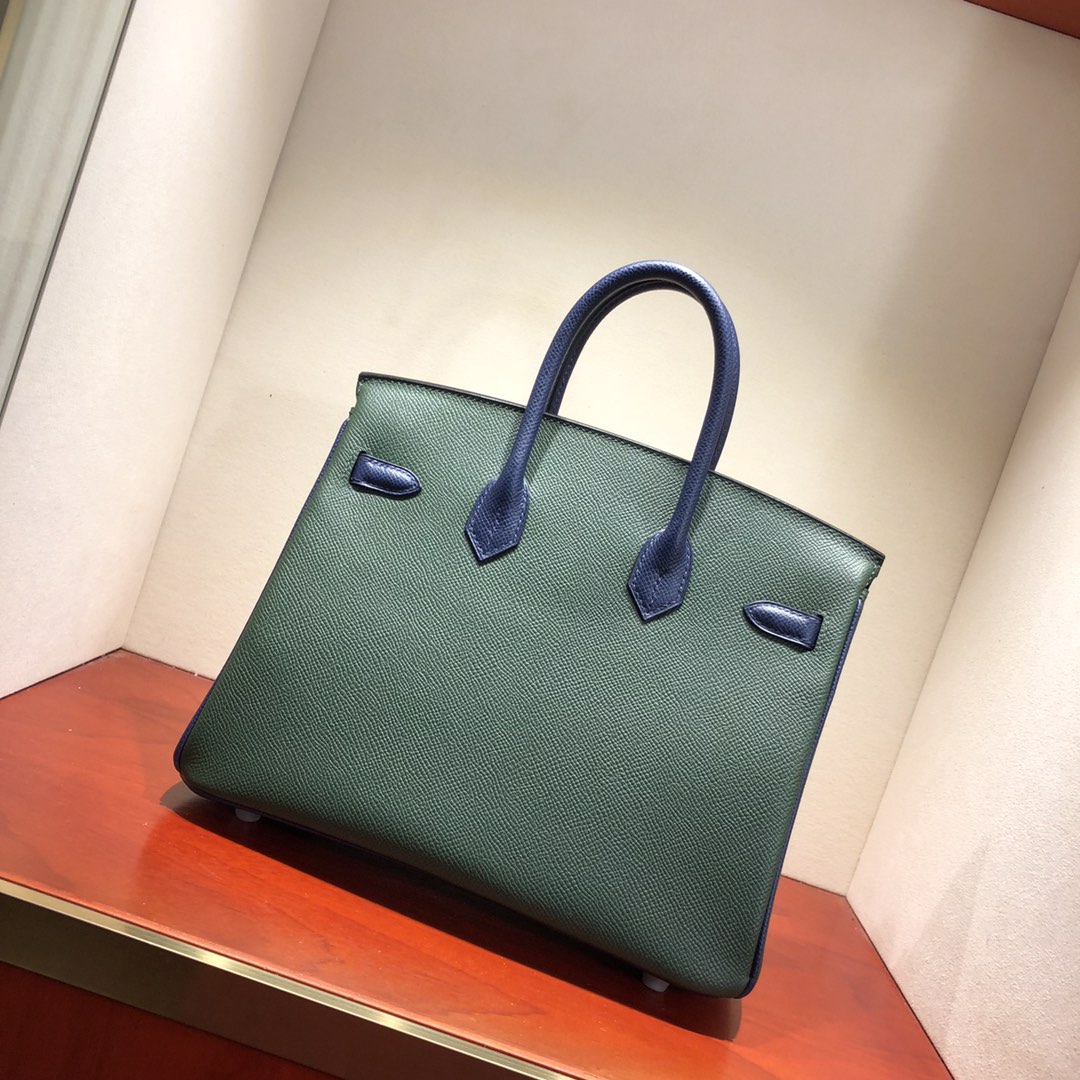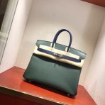 This is a replica ###Hermès Birkin 35 Vert Amclais and Blue Saphir Epsom Leather and Palladium Hardware. ###