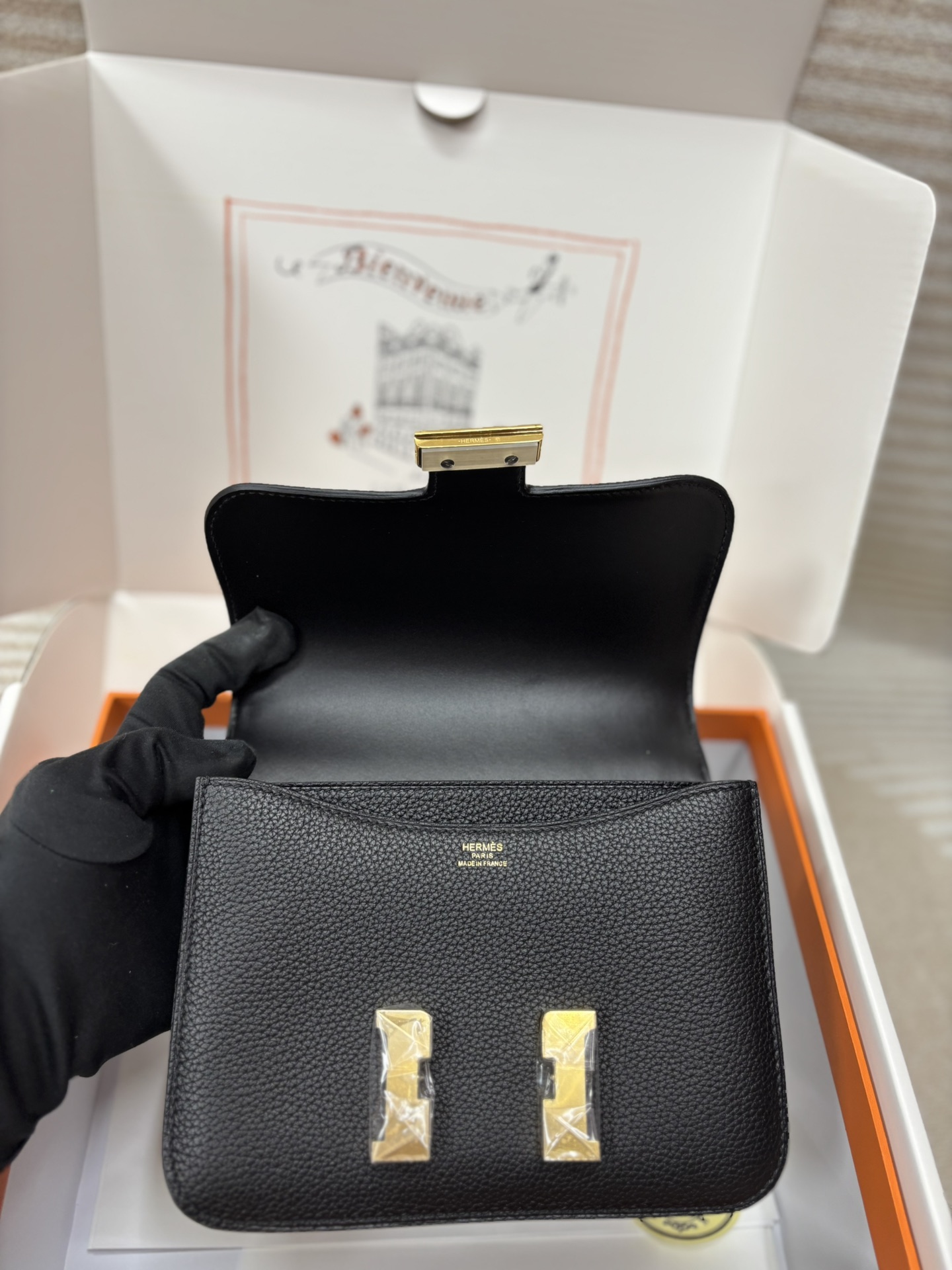 This is a replica ###Hermès Constance 18 Black Togo Gold Hardware. ###