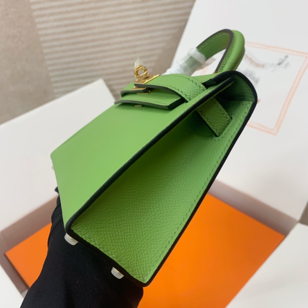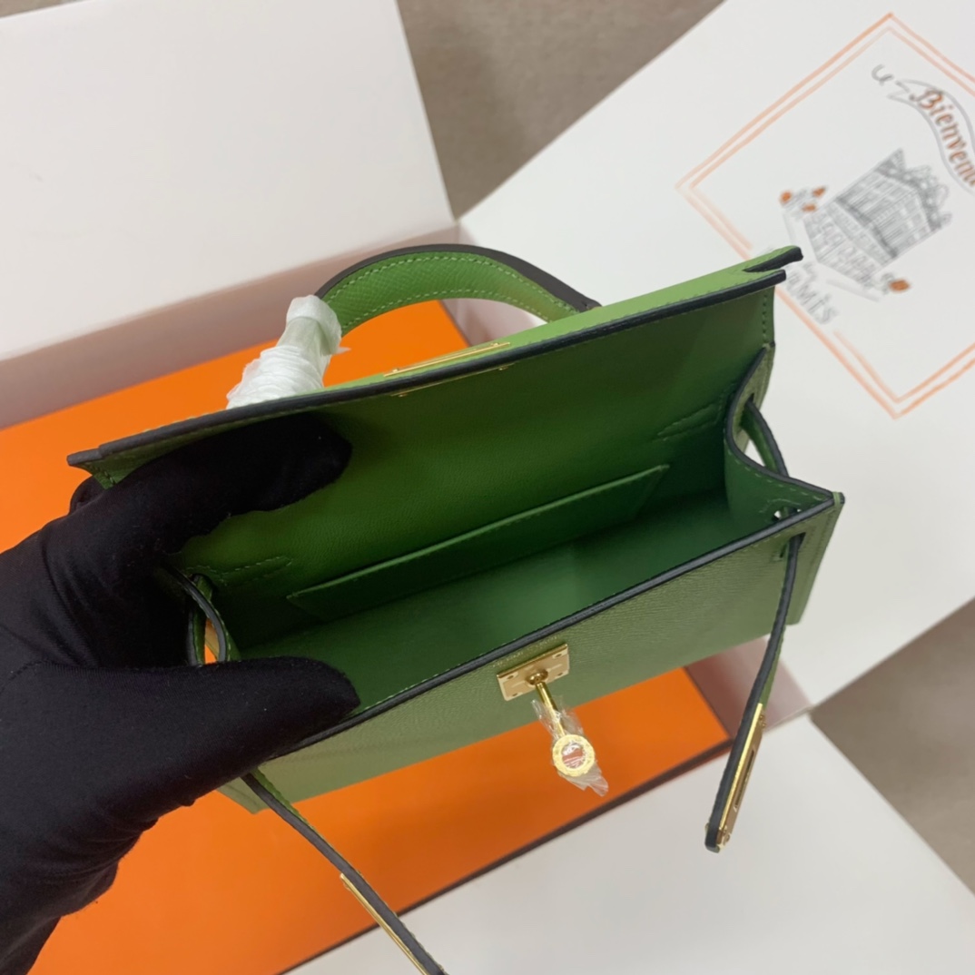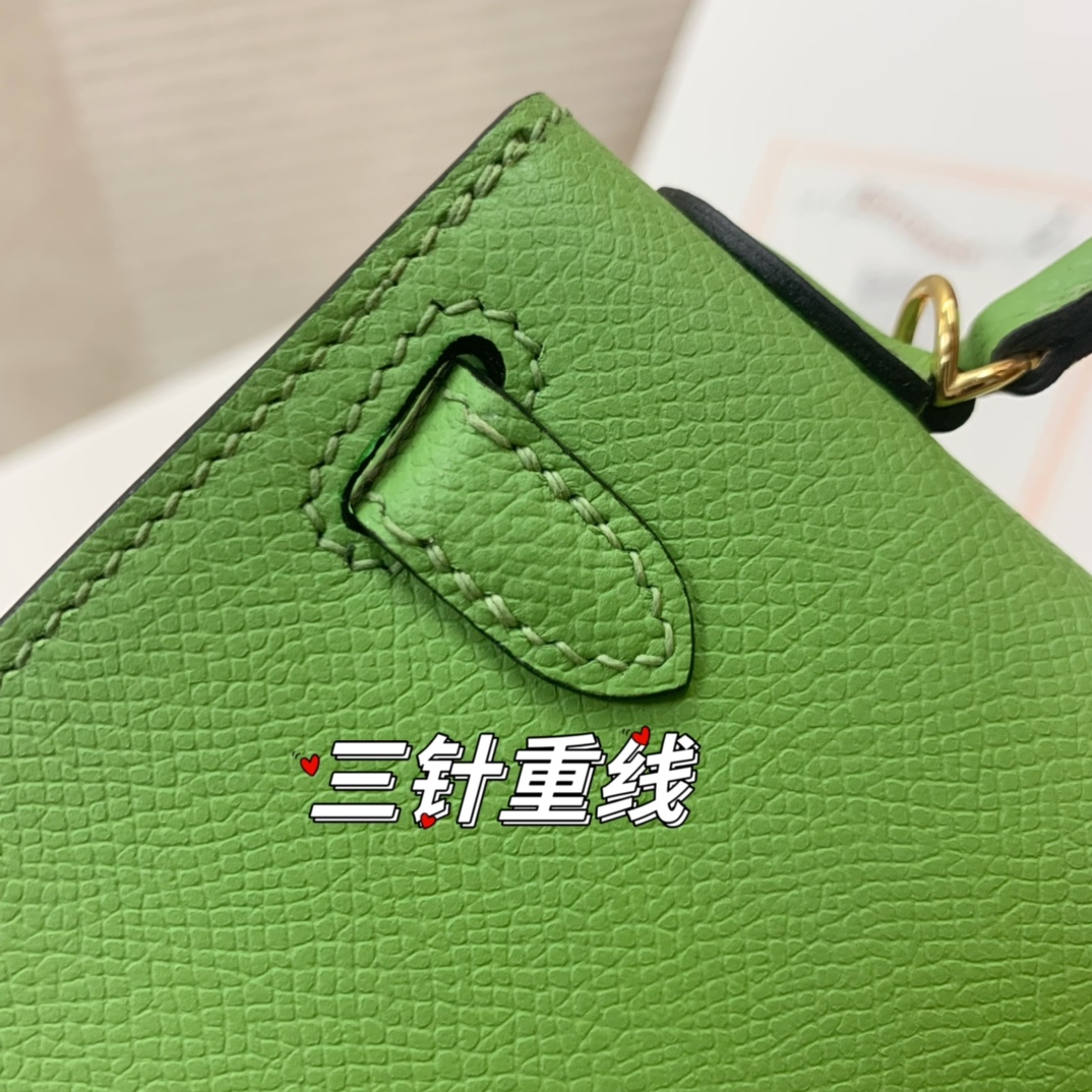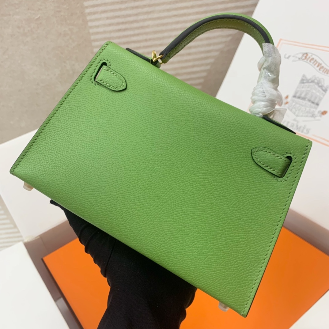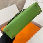 This is a replica ###Hermès Kelly Sellier 20 Vert Criquet Epsom Leather Gold Hardware. ###