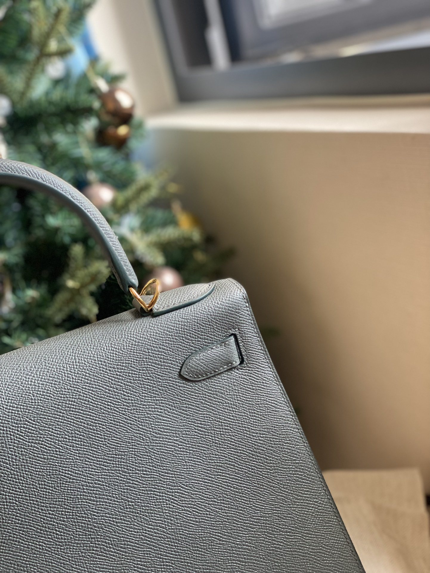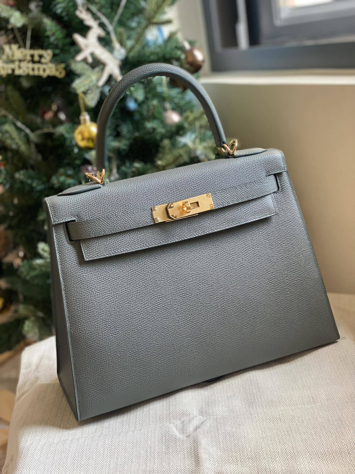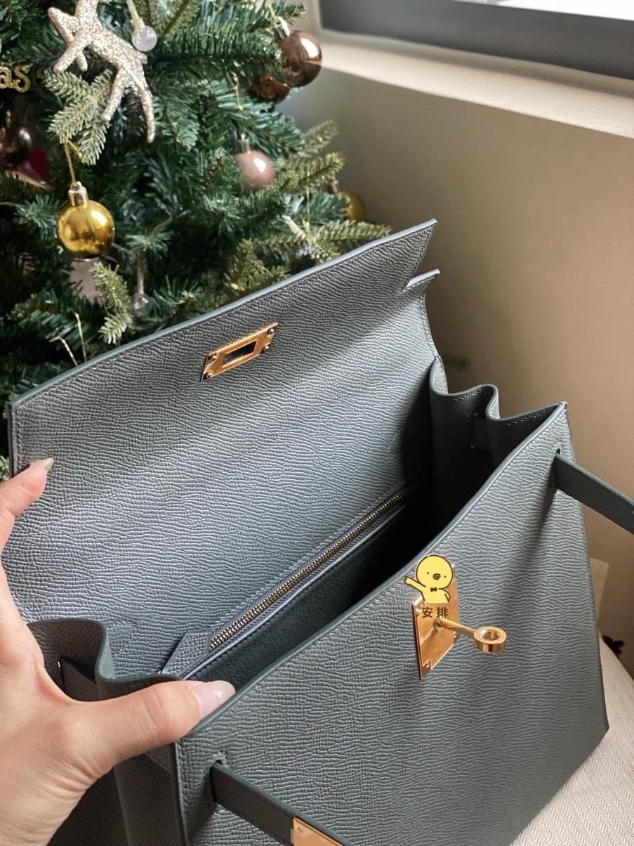 This is a replica ###Hermès Kelly Sellier 28 Vert Amande Epsom Leather Gold Hardware. ###