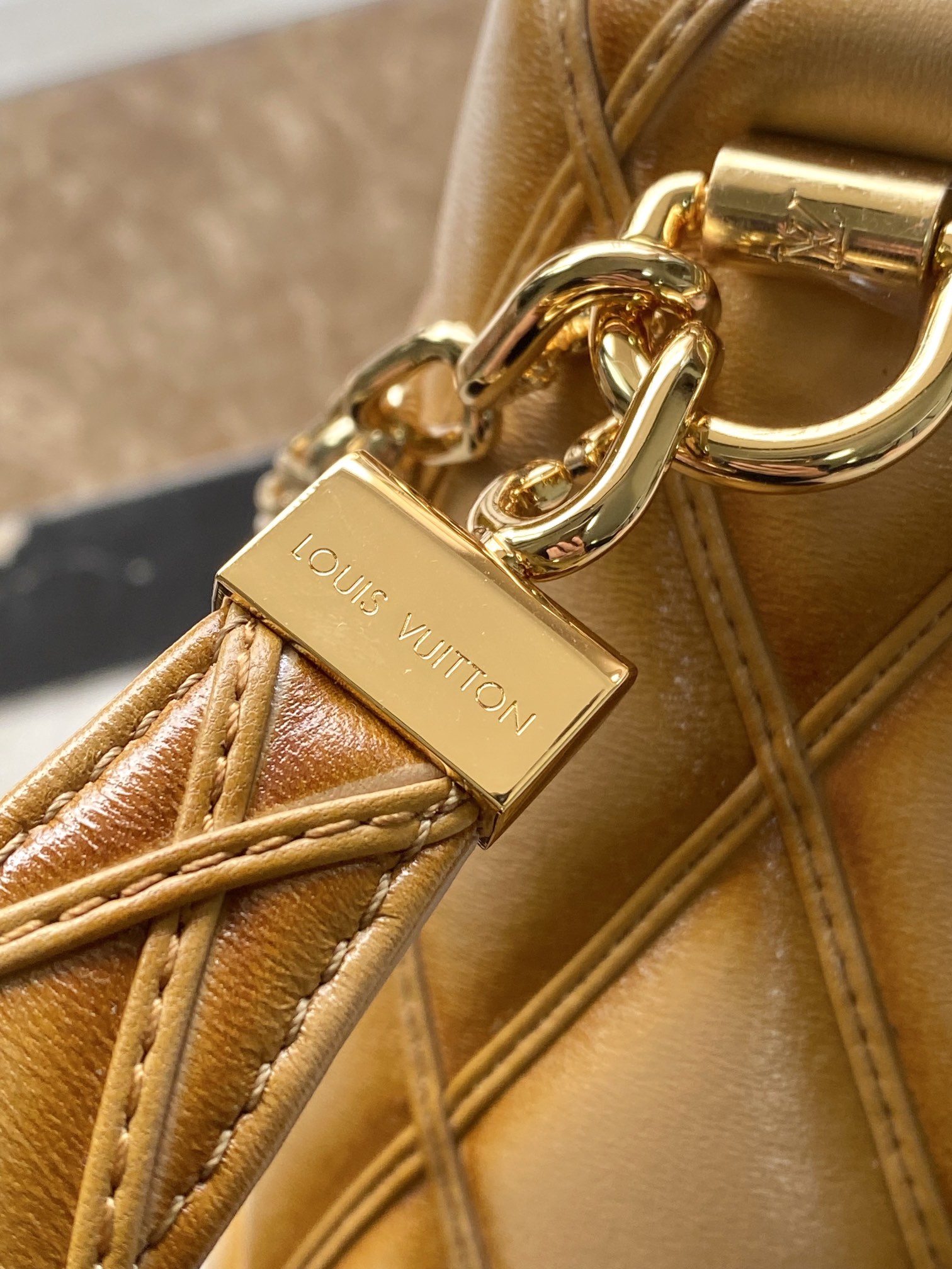 This is a replica LOUIS VUITTON M12332 GO-14 PM. ,7.9 x 5.5 x 3.5 inches ,Sand,Lambskin leather,Lambskin-leather trim,Cowhide-leather lining,Gold-toned hardware,Twist lock,Double inside back flat pocket with mirror,Fits: 6.7-inches smartphone, Rosalie Coin Purse, earphones, lipstick, tissues, keys, sunglasses,Chain:Sliding, removable,Handle:Single, removable