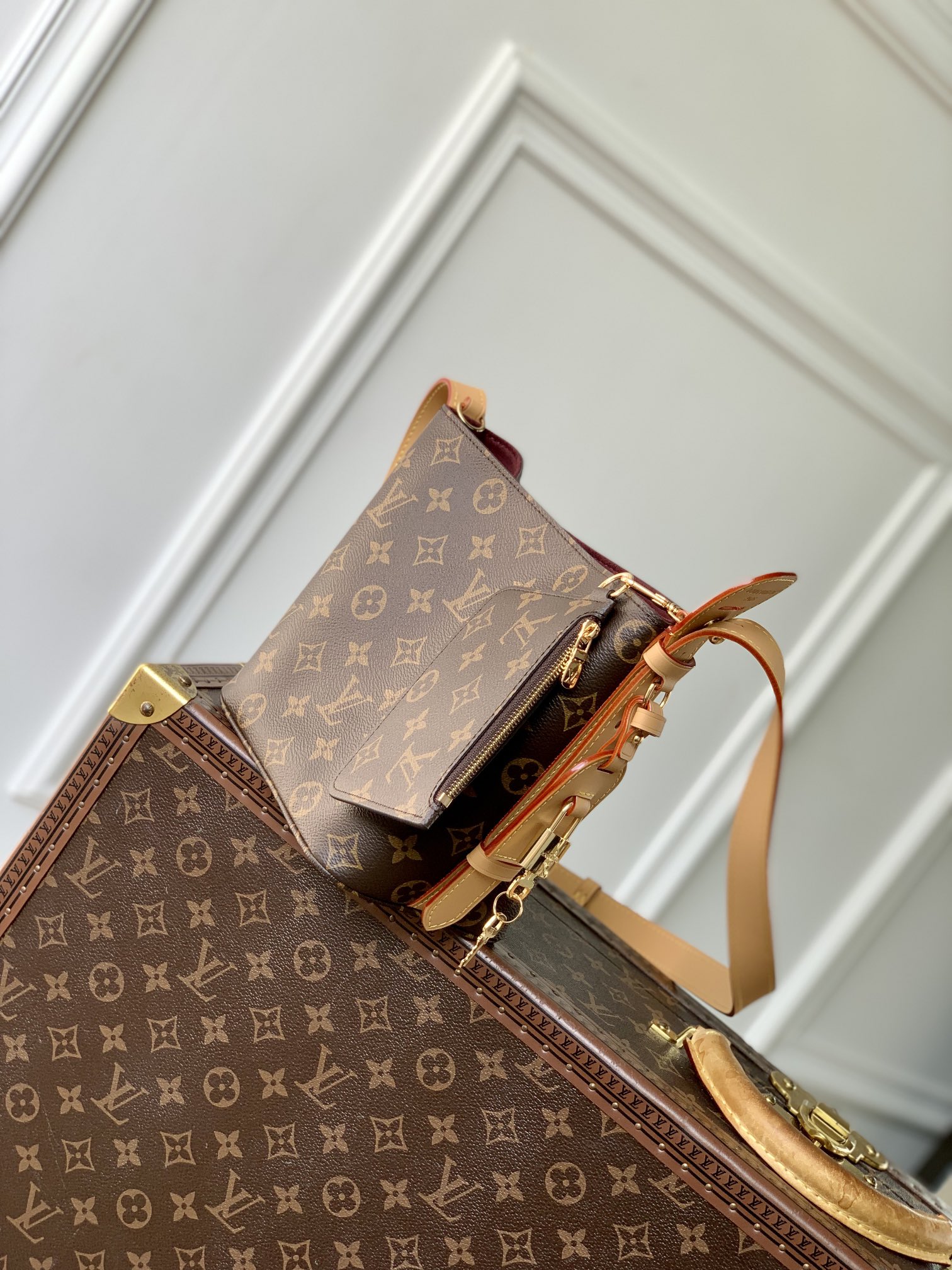 ,6.3 x 7.1 x 4.7 inches,(Length x Height x Width),Monogram coated canvas,Cowhide-leather trim,Microfiber lining,Gold-toned hardware,Magnet and hook closure,Removable inside zipped pouch,Name tag,Padlock,Additional leather strap for cross-body carry,Fits: smartphone, keys, Victorine wallet, earphones,Strap:Not removable, adjustable,Strap drop:4.7 inches,Strap drop max:21.7 inches,Handle:Single