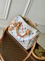 This is a replica LOUIS VUITTON M13085 LV x TM Speedy Bandoulière 25. ,9.8 x 7.5 x 5.9 inches ,Multicolored,Monogram coated canvas,Cowhide-leather trim,Textile lining,Gold-toned hardware,Double zipper closure,Inside flat zipped pocket,Padlock,Keybell,Fits: smartphone, keys, lipstick, Zippy wallet,Strap:Removable, not adjustable,Strap drop:17.3 inches,Handle:Double