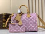 This is a replica LOUIS VUITTON M13914 Speedy P9 Bandoulière 30. ,12.6 x 8.9 x 7.1 inches ,Candy Pink,Calf leather,Calf-leather trim,Lambskin lining,Aged-gold-tone hardware,Main compartment with lock,Inside trio flat pocket,Inside zipped pocket,Removable pouch in leather,Name tag,Key bell,Strap:Removable, adjustable,Strap drop:18.1 inches,Strap drop max:23.6 inches,Handle:Double