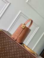 This is a replica LOUIS VUITTON M14416 Low Key All In BB.,The Low Key line introduces the All In BB, a compact bucket shape designed to transition effortlessly from day to night. Crafted from grained calfskin leather, it is elevated with gold-toned hardware finished with an aged effect to create a subtle vintage feel. Signature details include an iconic LV padlock, plus a detachable pocket patterned in the House’s emblematic Monogram. Multiple carry and styling options add to its versatility.,