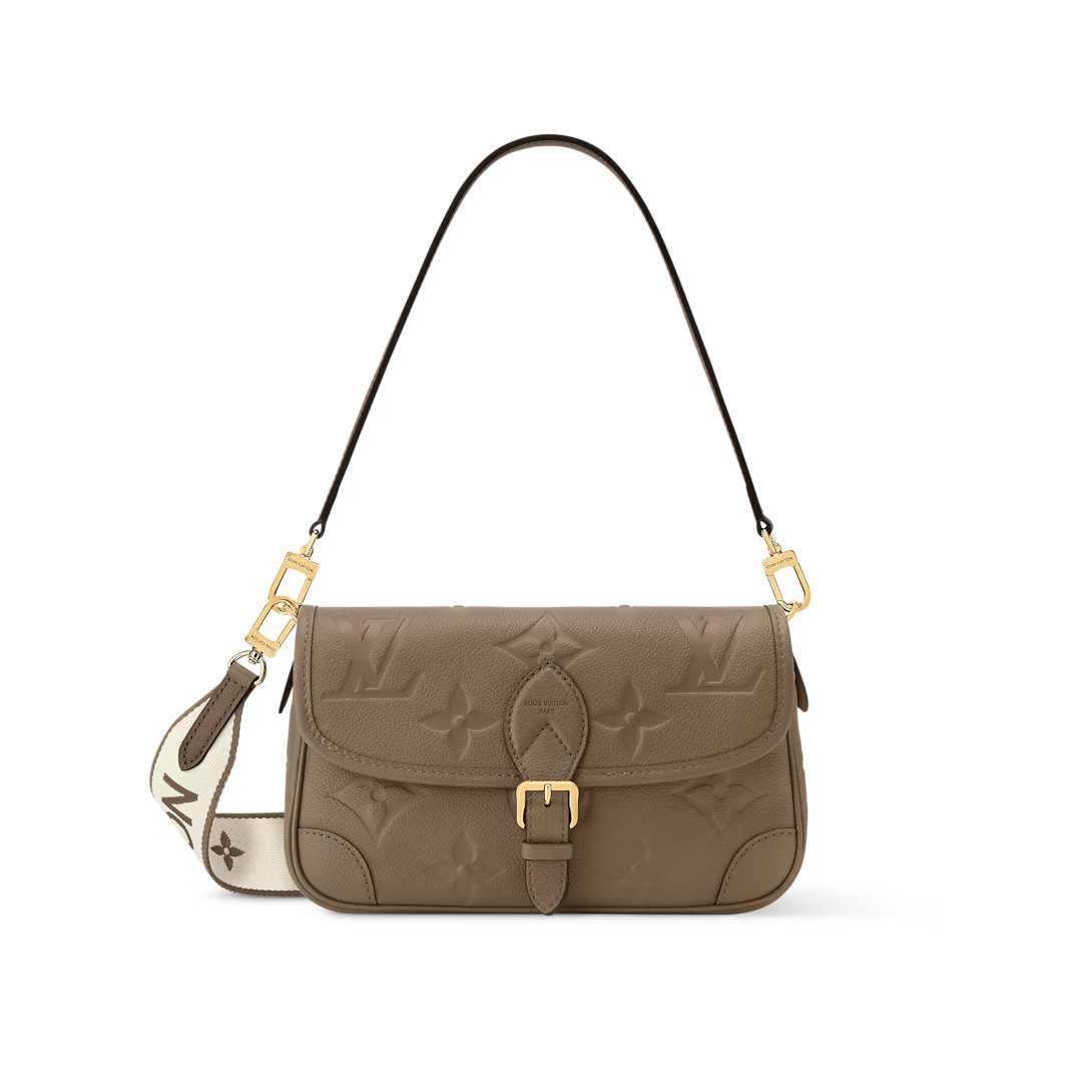 This is a replica LOUIS VUITTON M15049 Diane Bag. ,24 x 15 x 9 cm ,Smoke,Embossed grained cowhide leather,Cowhide leather trim,Microfibre lining,Gold-colour hardware,Flap with magnet closure,1 inside flat zipped pocket,Fits smartphone, wallet, keys, lipstick,Strap: Removable, adjustable,Strap Drop: 40.0 cm,Strap Drop Max: 60.0 cm,Handle: Single, removable