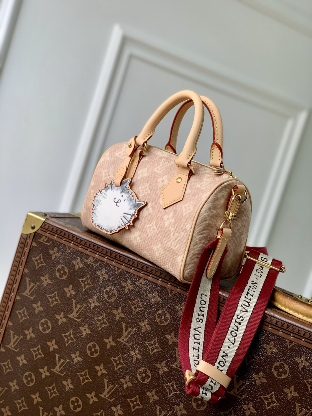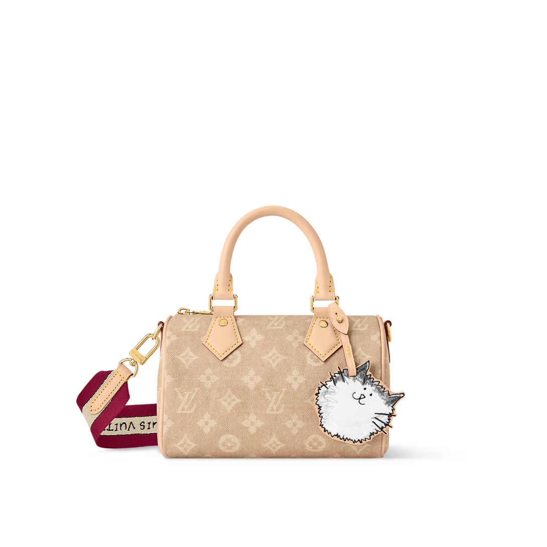 This is a replica LOUIS VUITTON M15151 Speedy Bandoulière 20. ,20.5 x 13.5 x 12 cm ,Meowgram coated canvas,Cowhide leather trim,Textile lining,Gold-colour hardware,Double zip closure,Inside flat pocket,1 removable cat-shaped leather charm,Padlock,Fits smartphone, Lisa Wallet, keys, lipstick,Strap: Removable, adjustable,Strap Drop: 39.0 cm,Strap Drop Max: 58.0 cm,Handle: Single x2
