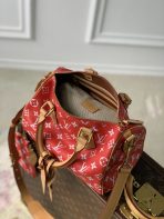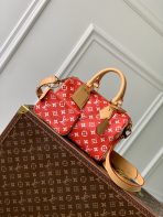 This is a replica LOUIS VUITTON M24425 Speedy P9 Bandoulière 25. ,9.8 x 7.5 x 5.9 inches ,Red,Soft calfskin,Natural cowhide-leather trim,Lambskin lining,Gold-color hardware,Main compartment with lock,Inside zipped pocket,Removable pouch in leather,Name tag,Key bell,Strap:Removable, adjustable,Strap drop:21.7 inches,Strap drop max:24.8 inches,Handle:Double